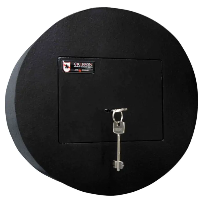 Griffon A.15/155.K це компактний металевий автомобільний сейф круглої форми для монтажу в багажнику під запасним колесом, для безпечного зберігання готівки, документів або ключів. Підходить для приватних і службових авто. Конструкція корпусу і дверцят - 2 мм (сталь) та 4 мм (сталь). Відкривання зверху, замок ключовий SK 106/4 (Україна). Модель не має класу зламостійкості і вогнестійкості та забезпечує базовий рівень безпеки в автомобілі.