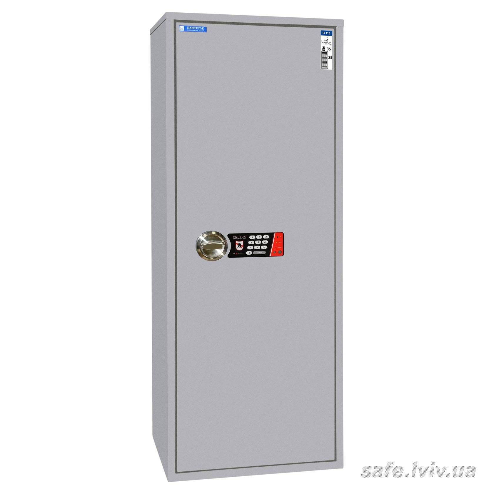 Griffon B.118.E це офісний сейф для зберігання документів, грошей та цінностей у квартирах і офісах. Бюджетна модель із міцною сталевою конструкцією та односторонньою ригельною системою замикання. Замок електронний Griffon 2.0 (Україна). Усередині є трейзер, 2 полиці; передбачені анкерні отвори для кріплення до стіни.