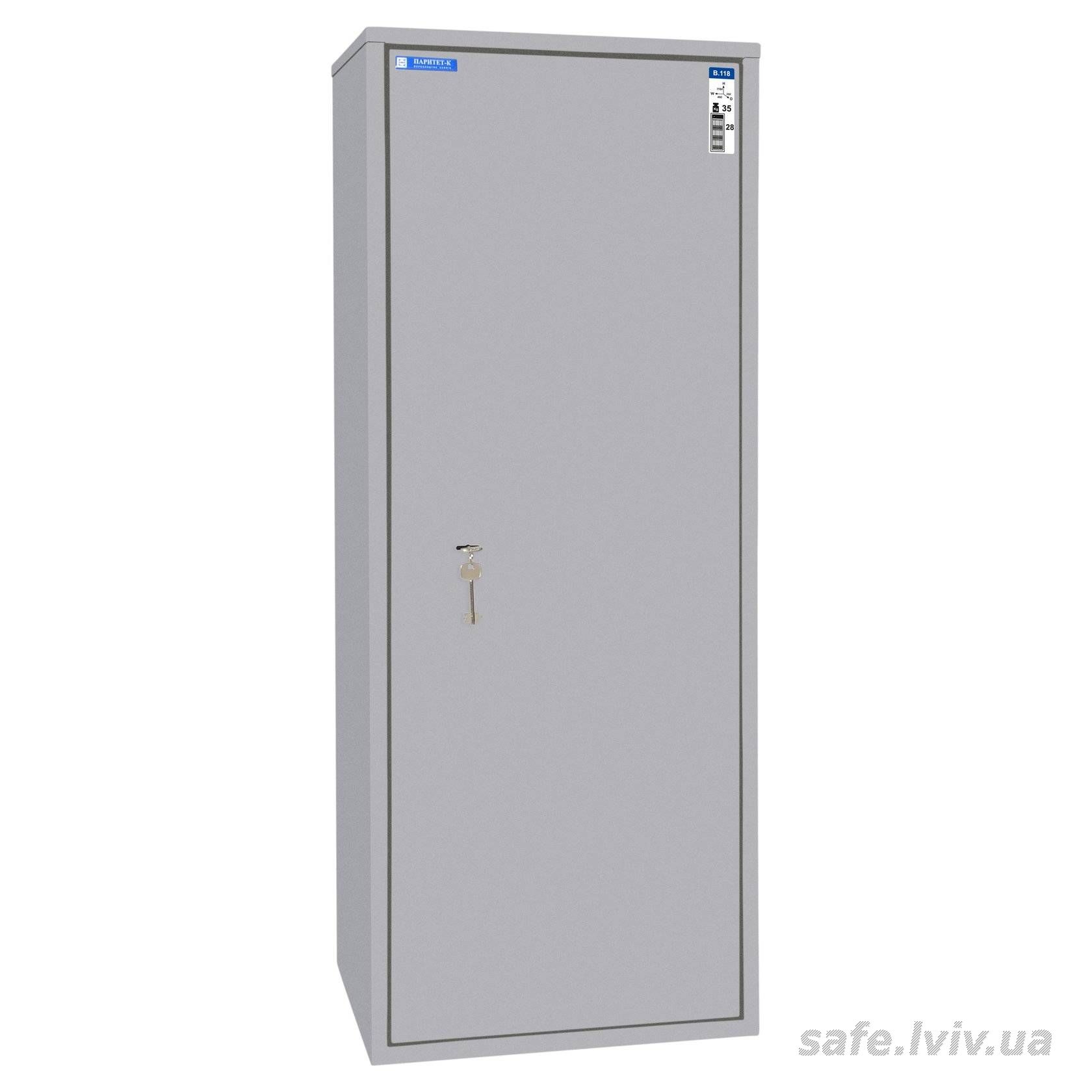 Griffon B.118.K це офісний сейф для зберігання документів, грошей та цінностей у квартирах і офісах. Бюджетна модель із міцною сталевою конструкцією та односторонньою ригельною системою замикання. Замок ключовий SK 106/4 (Україна). Усередині є трейзер, 2 полиці; передбачені анкерні отвори для кріплення до стіни.