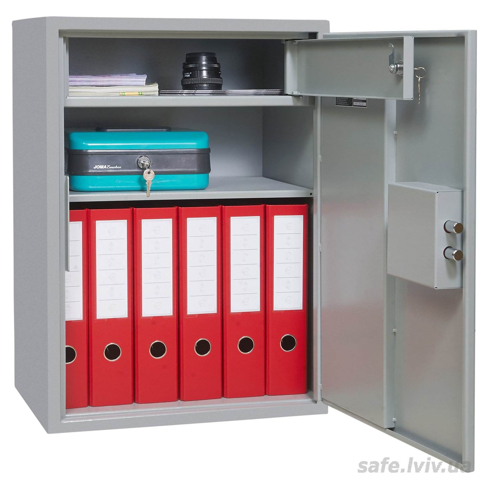 Griffon B.65.K це офісний сейф для зберігання документів, грошей та цінностей у квартирах і офісах. Бюджетна модель із міцною сталевою конструкцією та односторонньою ригельною системою замикання. Замок ключовий SK 106/4 (Україна). Усередині є трейзер, 1 полиця; передбачені анкерні отвори для кріплення до стіни.