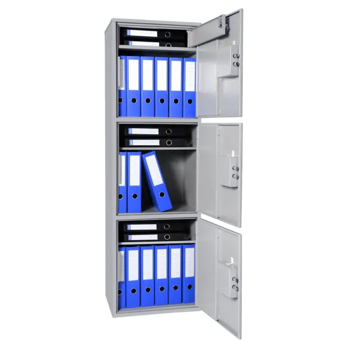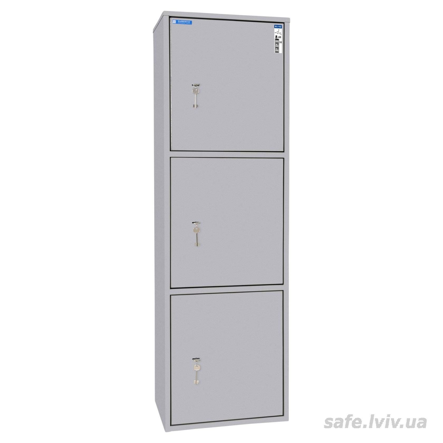 Griffon B3.152.K це офісний сейф для зберігання документів, грошей та цінностей у квартирах і офісах. Бюджетна модель із міцною сталевою конструкцією та односторонньою ригельною системою замикання. Замок ключовий SK 106/4 (Україна). Усередині є трейзер, 2 полиці, 3 відділення; передбачені анкерні отвори для кріплення до стіни.