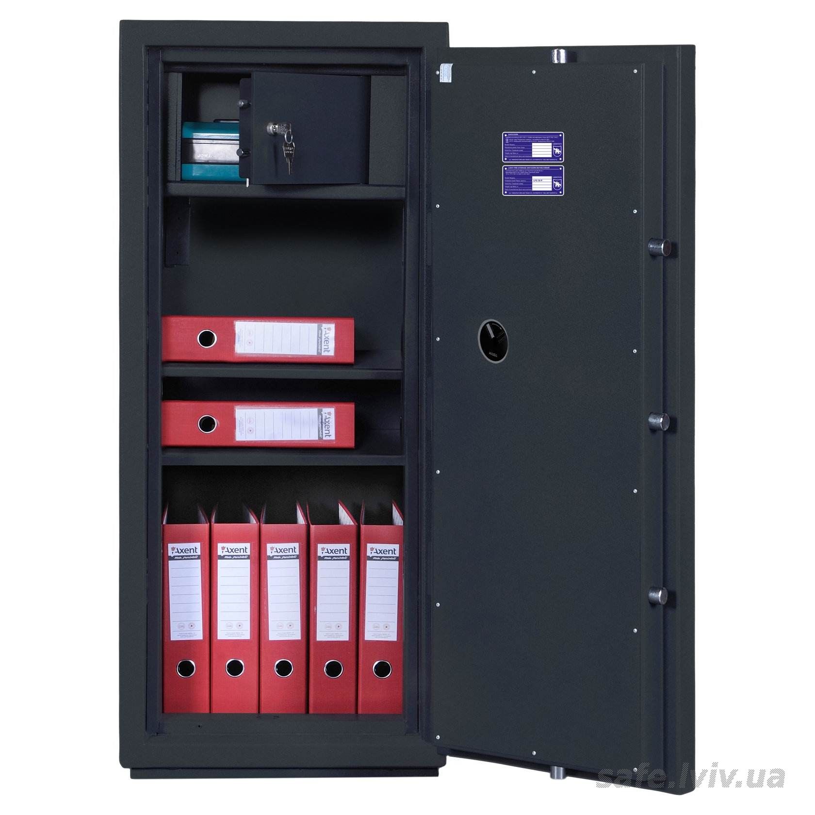 Griffon CL.II.120.C це сейф вогнезламостійкий, для грошей, для документів, для офісу. Рекомендований ліміт зберігання грошей - до 32 млн грн. Конструкція корпусу 40 мм (сталь - зламостійкий бетон - сталь), дверей 104 мм (сталь - зламостійкий бетон - сталь), ригельна система тристороння, 5 ригелів Ø 25 мм, пасивний ригель зі сторони петель та замок - кодовий механічний La GARD (США) VdS Class 1 (A).