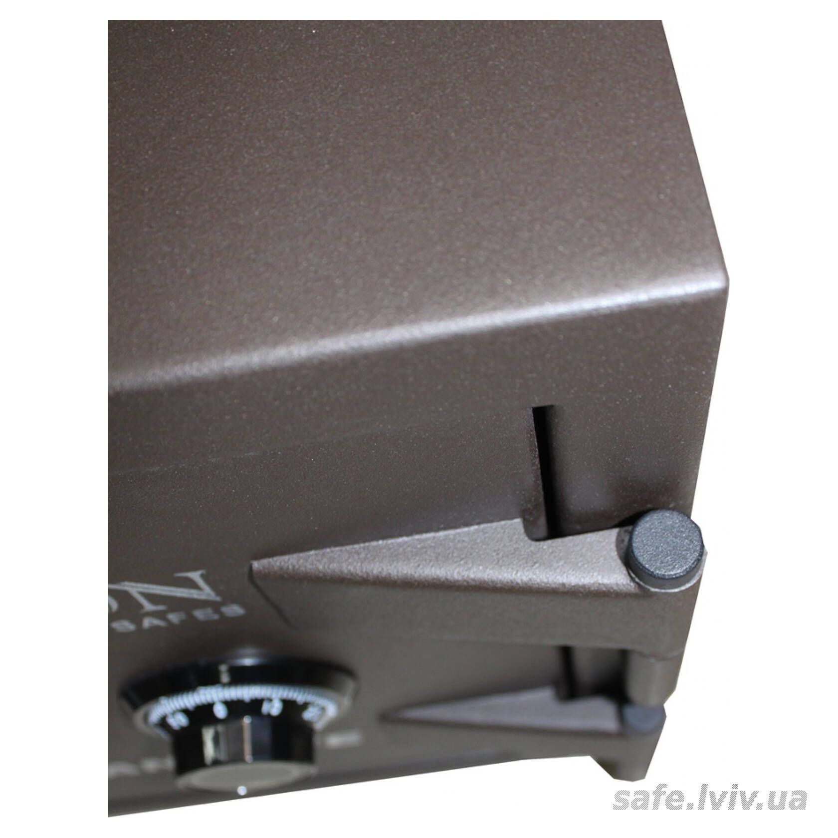 Griffon CL.II.50.C Brown це сейф вогнезламостійкий, для дому, для грошей, для документів. Рекомендований ліміт зберігання грошей - до 32 млн грн. Конструкція корпусу 40 мм (сталь - зламостійкий бетон - сталь), дверей 104 мм (сталь - зламостійкий бетон - сталь), ригельна система тристороння, 5 ригелів Ø 25 мм, пасивний ригель зі сторони петель та замок - кодовий механічний La GARD (США) VdS Class 1 (A).