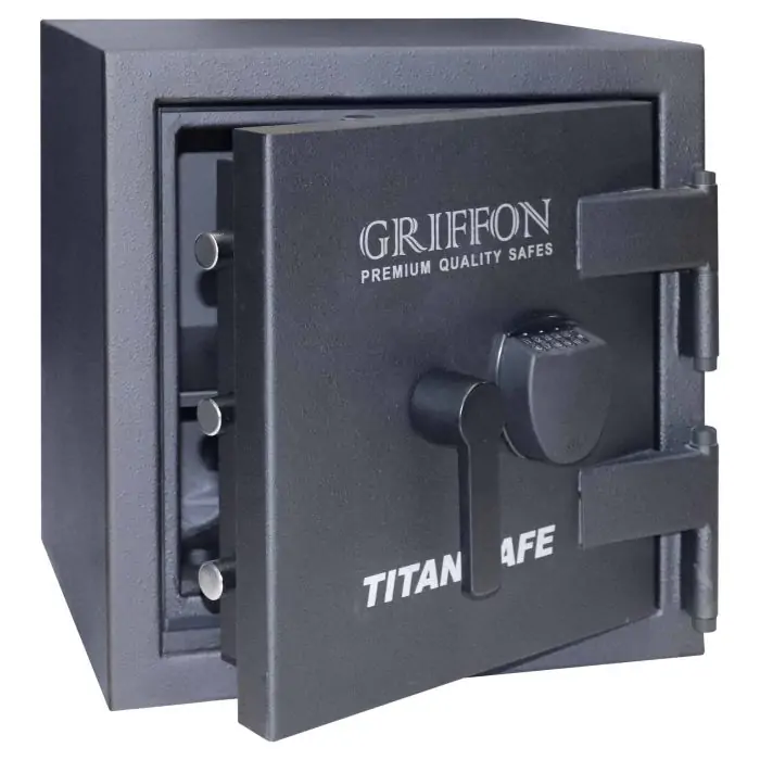 Griffon CL.II.50.E Black це сейф вогнезламостійкий, для дому, для грошей, для документів. Рекомендований ліміт зберігання грошей - до 32 млн грн. Конструкція корпусу 40 мм (сталь - зламостійкий бетон - сталь), дверей 104 мм (сталь - зламостійкий бетон - сталь), ригельна система одностороння, 5 ригелів Ø 25 мм, пасивний ригель зі сторони петель та замок - електронний SMARTLOCK (Італія) VdS Class 1 (A).