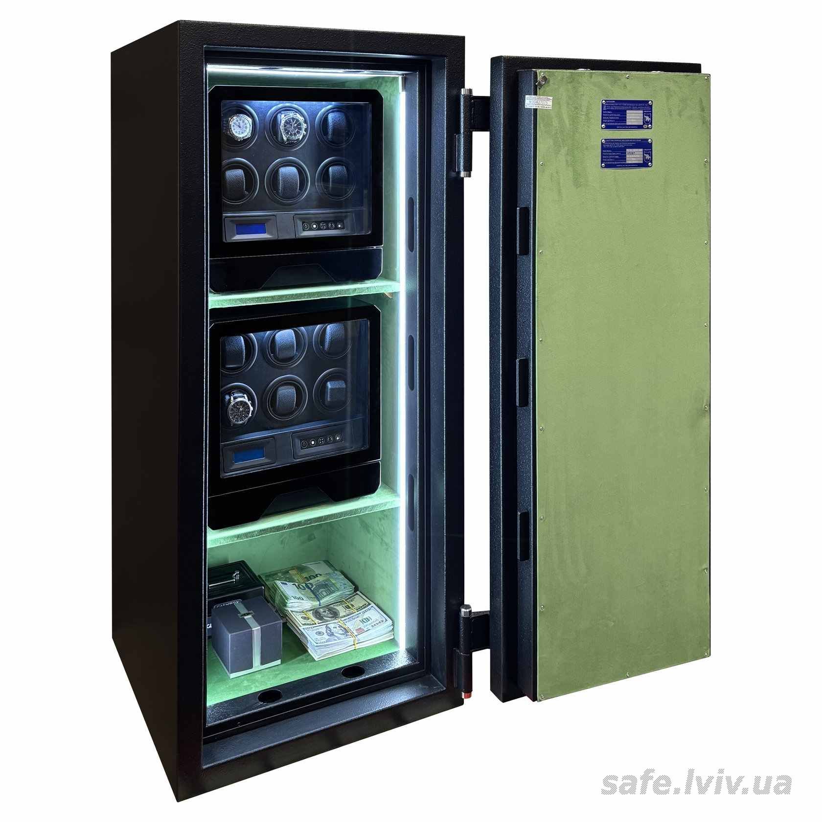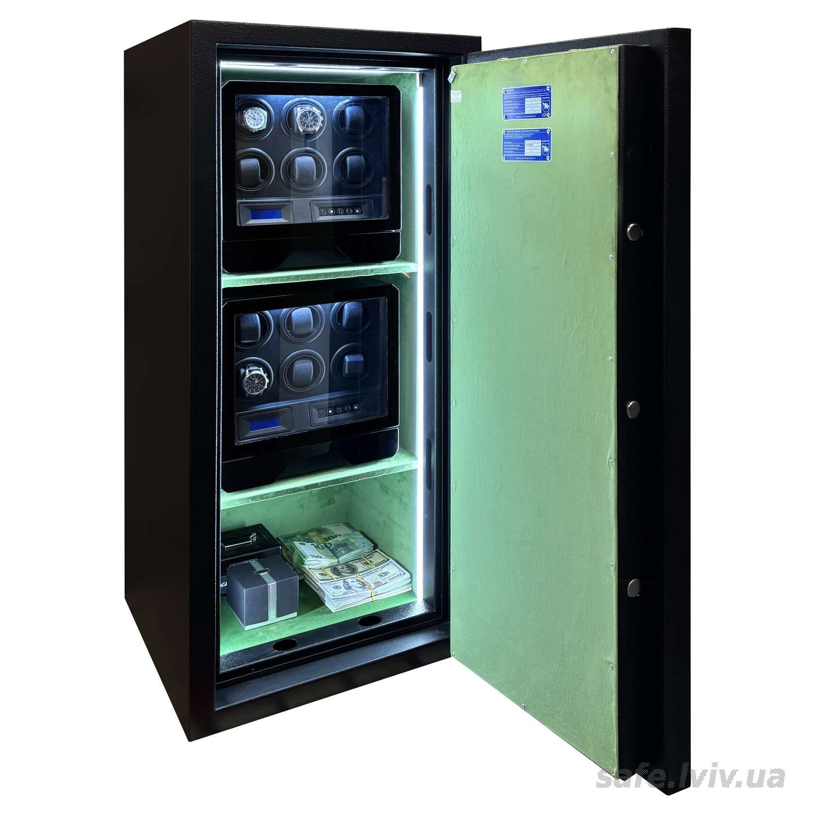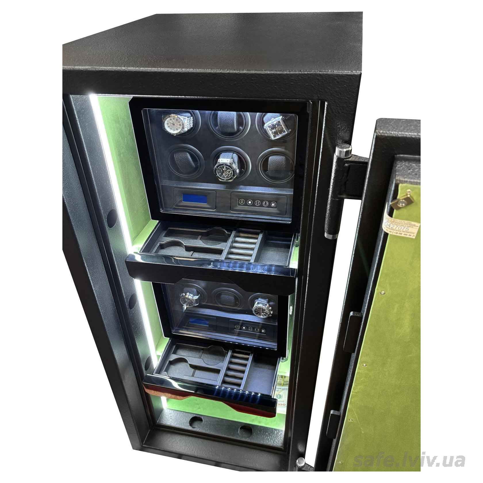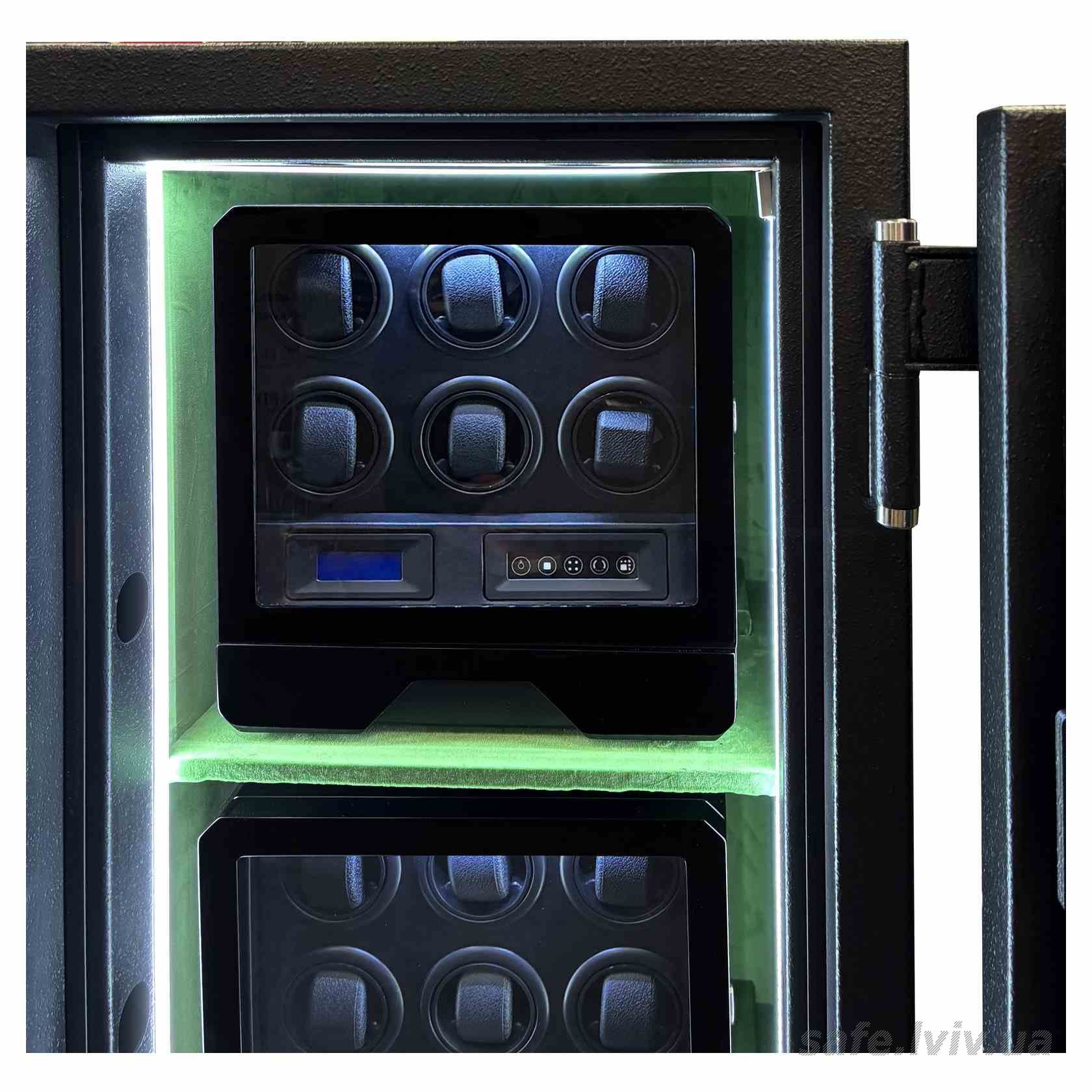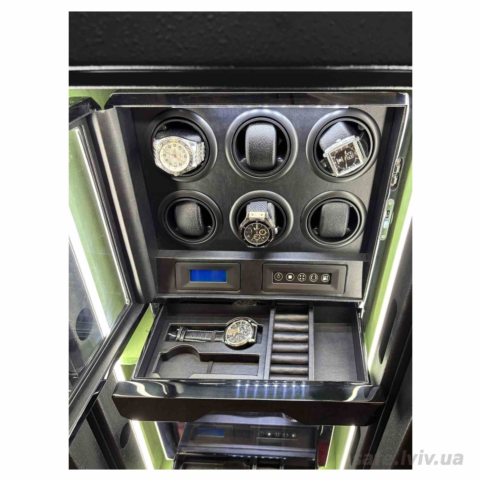 - Комплектація: 2 скриньки для підзаводу 6 годинників, внутрішнє оздоблення, підсвітка; отвори для анкерування до підлоги.