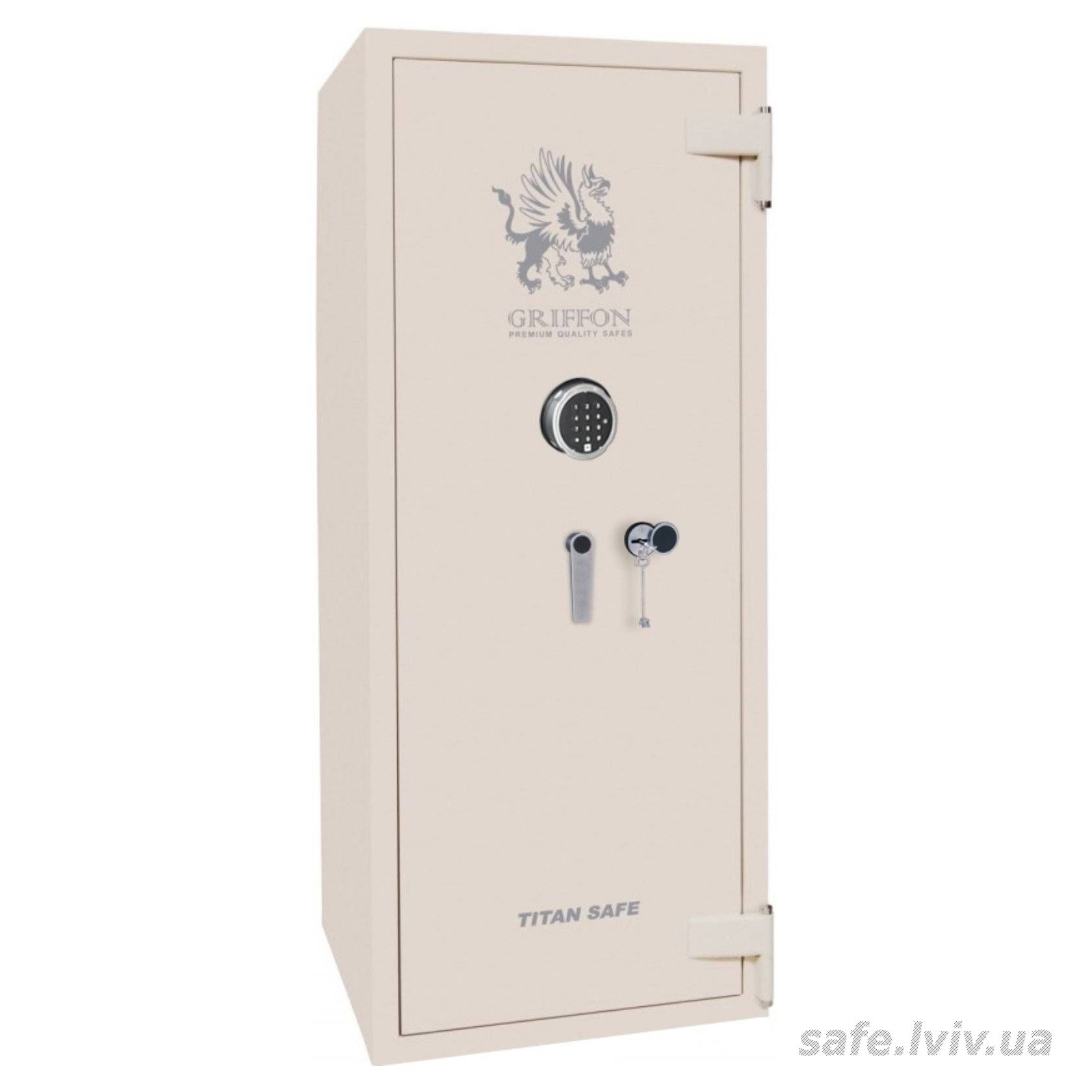 Griffon CL.III.150.K.E Cream це сертифікований за третім класом опору до зламу сейф, призначений для зберігання грошей, коштовностей і документів у банках, офісах та приватних будинках. Зламостійкість забезпечується конструкцією корпусу 40 мм (сталь - зламостійкий бетон - сталь), дверей 104 мм (сталь - зламостійкий бетон - сталь), ригельною системою тристороння, 7 ригелів Ø 25 мм та замком (ключовий STUV (Німеччина) VdS Class 1 (A), електронний STUV SWINGLOX (Німеччина) VdS Class 2). Рекомендовані ліміти зберігання - до 8 000 мінімальних зарплат для особистого користування та до 4 000 для комерційного.