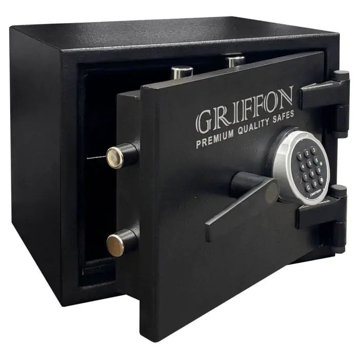 Griffon CL.III.32.E BLACK це сертифікований за третім класом опору до зламу сейф, призначений для зберігання грошей, коштовностей і документів у банках, офісах та приватних будинках. Зламостійкість забезпечується конструкцією корпусу 40 мм (сталь - зламостійкий бетон - сталь), дверей , ригельною системою тристороння, 6 ригелів Ø 25 мм та замком (електронний Carl Wittkopp (Німеччина) VdS Class 2 (B)). Рекомендовані ліміти зберігання - до 8 000 мінімальних зарплат для особистого користування та до 4 000 для комерційного.