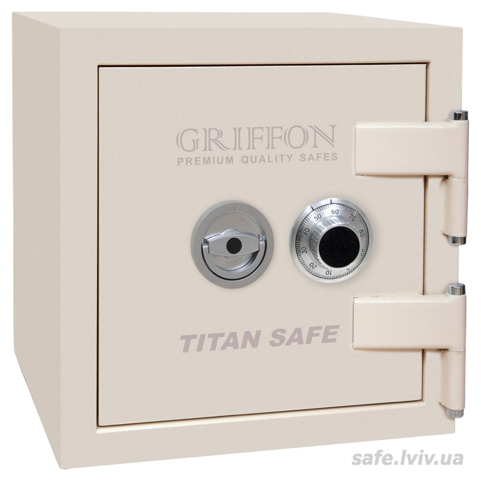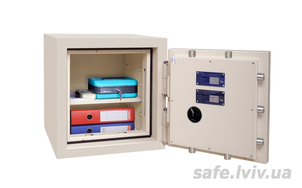 Griffon CL.III.50.C Cream це сертифікований за третім класом опору до зламу сейф, призначений для зберігання грошей, коштовностей і документів у банках, офісах та приватних будинках. Зламостійкість забезпечується конструкцією корпусу 40 мм (сталь - зламостійкий бетон - сталь), дверей 104 мм (сталь - зламостійкий бетон - сталь), ригельною системою тристороння, 7 ригелів Ø 25 мм та замком (кодовий механічний La GARD (США) VdS Class 1 (A)). Рекомендовані ліміти зберігання - до 8 000 мінімальних зарплат для особистого користування та до 4 000 для комерційного.