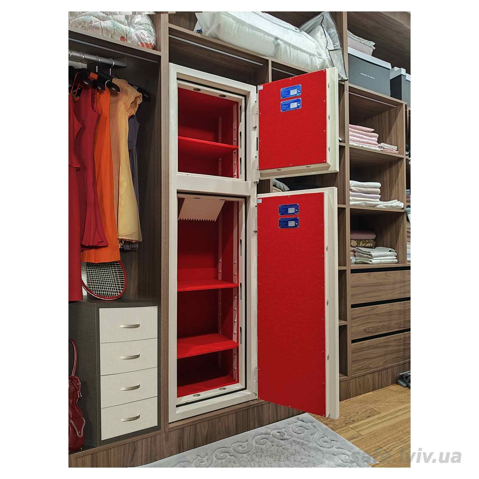- Комплектація: внутрішнє оздоблення, отвір для депонування, 3 полиці, термострічка, 2 відділення; отвори для анкерування до підлоги.