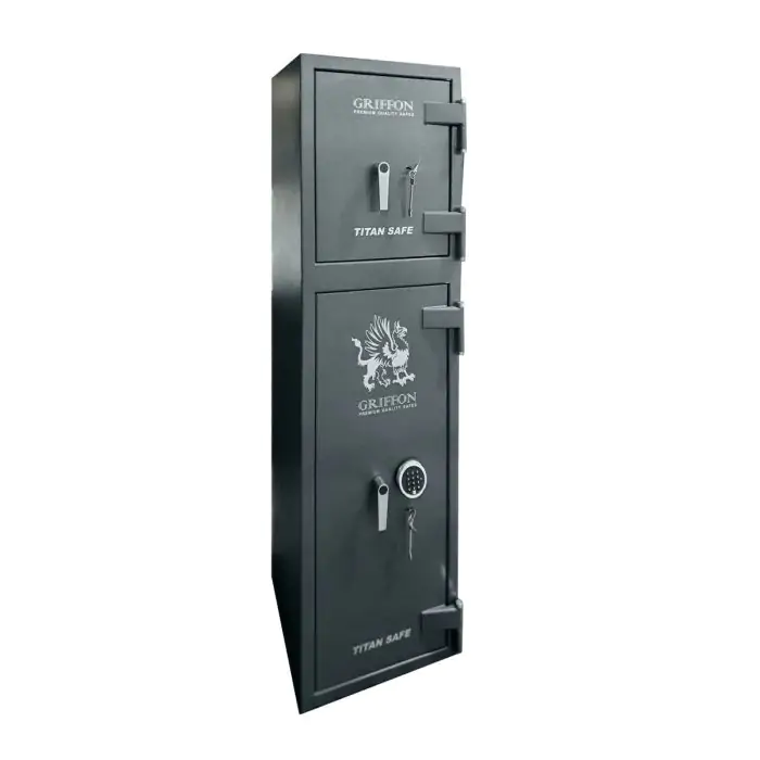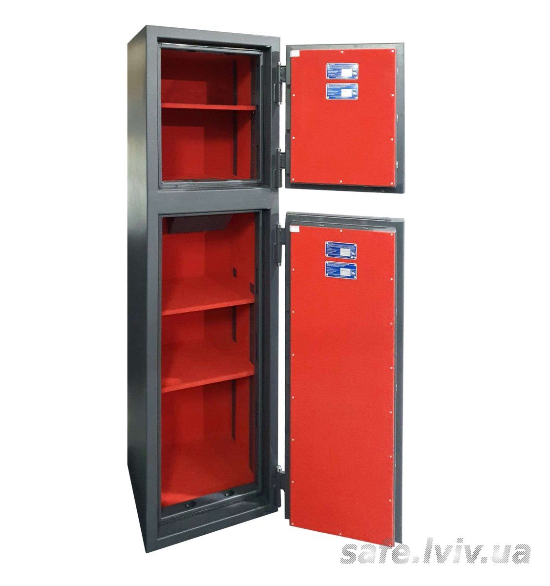 - Комплектація: внутрішнє оздоблення, отвір для депонування, 3 полиці, термострічка, 2 відділення; отвори для анкерування до підлоги.