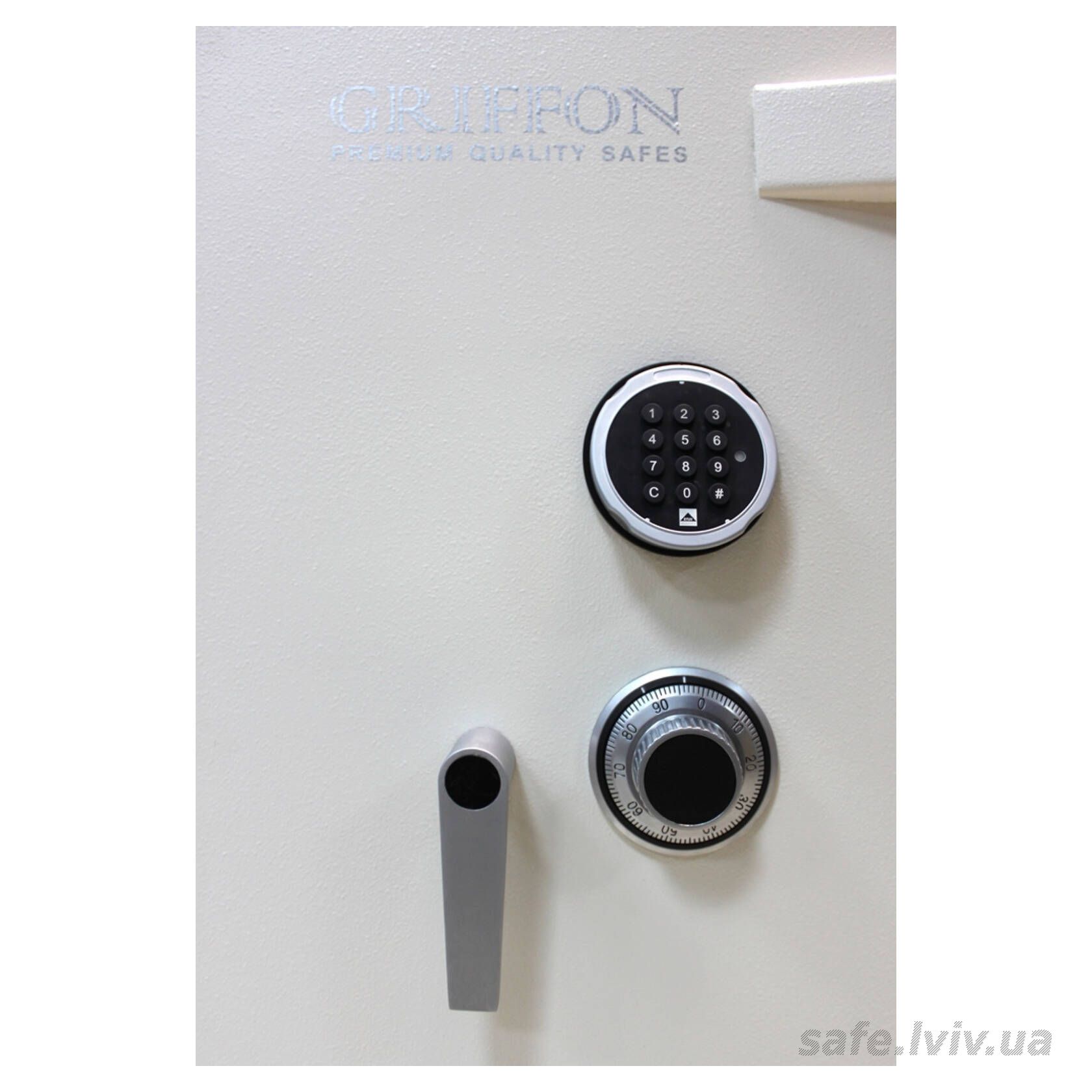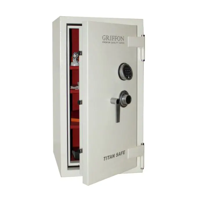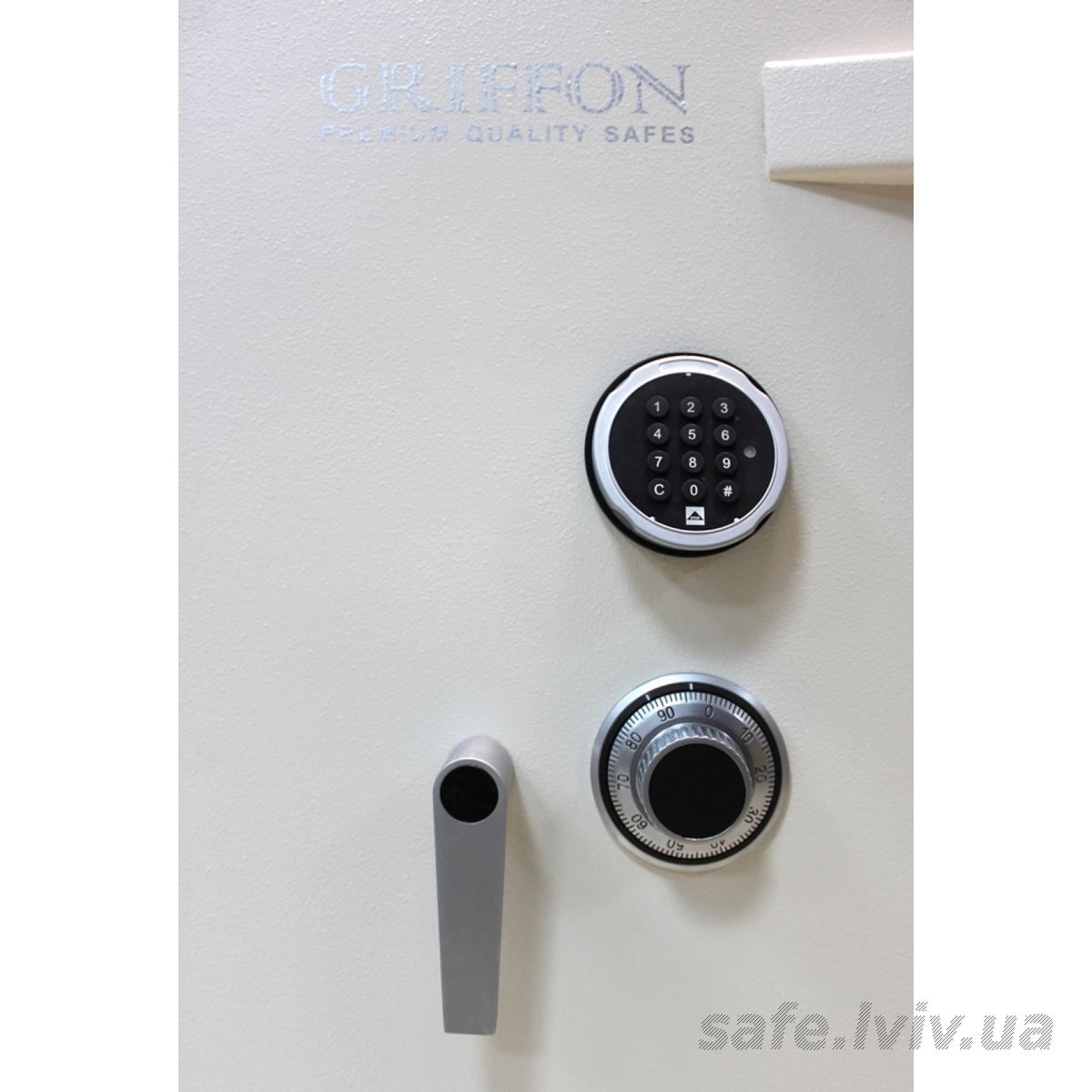 Griffon CL.III.90.E.C Cream це сертифікований за третім класом опору до зламу сейф, призначений для зберігання грошей, коштовностей і документів у банках, офісах та приватних будинках. Зламостійкість забезпечується конструкцією корпусу 40 мм (сталь - зламостійкий бетон - сталь), дверей 104 мм (сталь - зламостійкий бетон - сталь), ригельною системою тристороння, 7 ригелів Ø 25 мм та замком (кодовий механічний La GARD (США) VdS Class 1 (A), електронний STUV SWINGLOX (Німеччина) VdS Class 2). Рекомендовані ліміти зберігання - до 8 000 мінімальних зарплат для особистого користування та до 4 000 для комерційного.