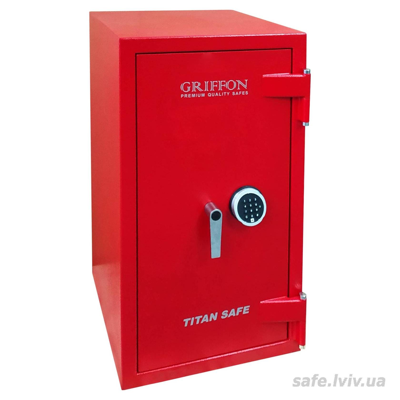 Griffon CL.III.90.E Red це сертифікований за третім класом опору до зламу сейф, призначений для зберігання грошей, коштовностей і документів у банках, офісах та приватних будинках. Зламостійкість забезпечується конструкцією корпусу 40 мм (сталь - зламостійкий бетон - сталь), дверей 104 мм (сталь - зламостійкий бетон - сталь), ригельною системою тристороння, 7 ригелів Ø 25 мм та замком (електронний STUV SWINGLOX (Німеччина) VdS Class 2). Рекомендовані ліміти зберігання - до 8 000 мінімальних зарплат для особистого користування та до 4 000 для комерційного.