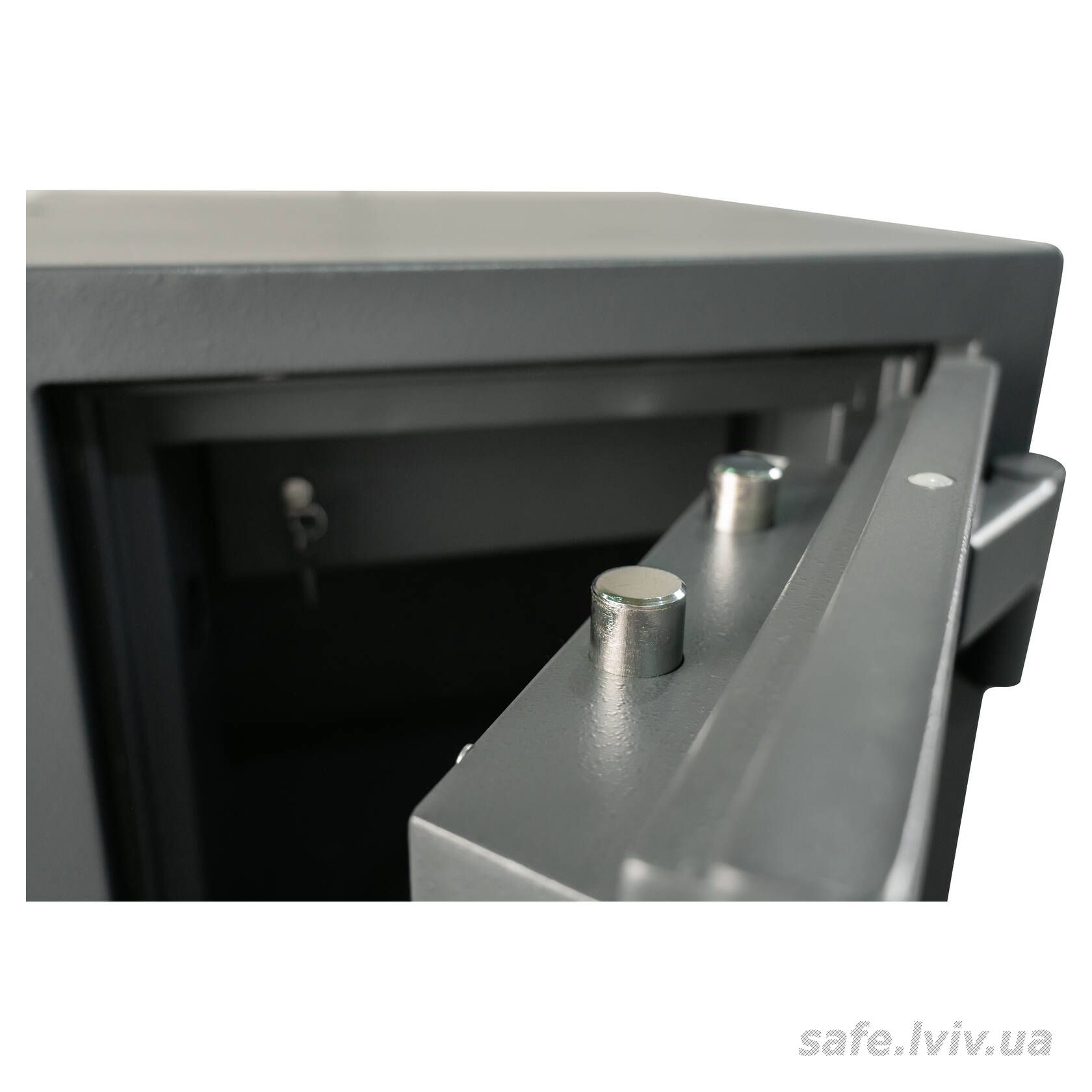 - Конструкція: корпус 80 мм (сталь - зламостійкий бетон - сталь), двері 80 мм (сталь - зламостійкий бетон - сталь); ригельна система чотиристороння, 10 ригелів Ø 25 мм.