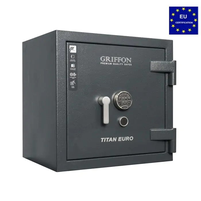 Griffon CL.V.70.K.E.T це сертифікований сейф клас V за EN 1143-1 та без вогнестійкості, призначений для зберігання великих сум грошей, важливих документів і коштовностей у банках, фінансових установах, офісах та приватних будинках. Конструкція корпусу 80 мм (сталь - зламостійкий бетон - сталь), дверей 80 мм (сталь - зламостійкий бетон - сталь); ригельна система тристороння, 12 ригелів Ø 40 мм; пасивний ригель зі сторони петель; замок - ключовий WITTKOPP (Німеччина) VDS 1 (A), електронний Easthouse (Китай) VdS Class 2 (B). Рекомендовані ліміти зберігання - до 20 000 мінімальних зарплат для особистого користування та до 10 000 для комерційного.