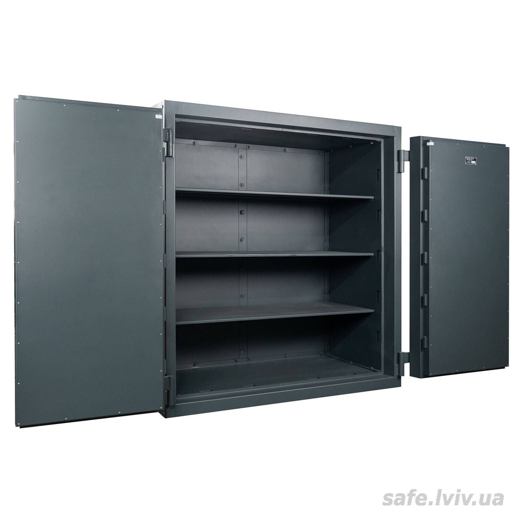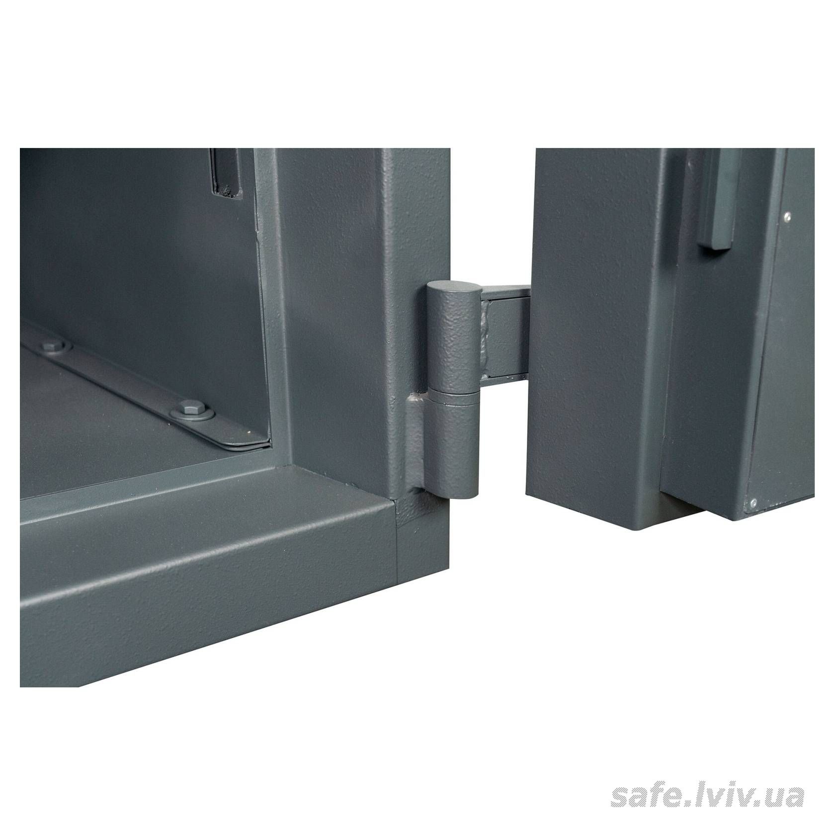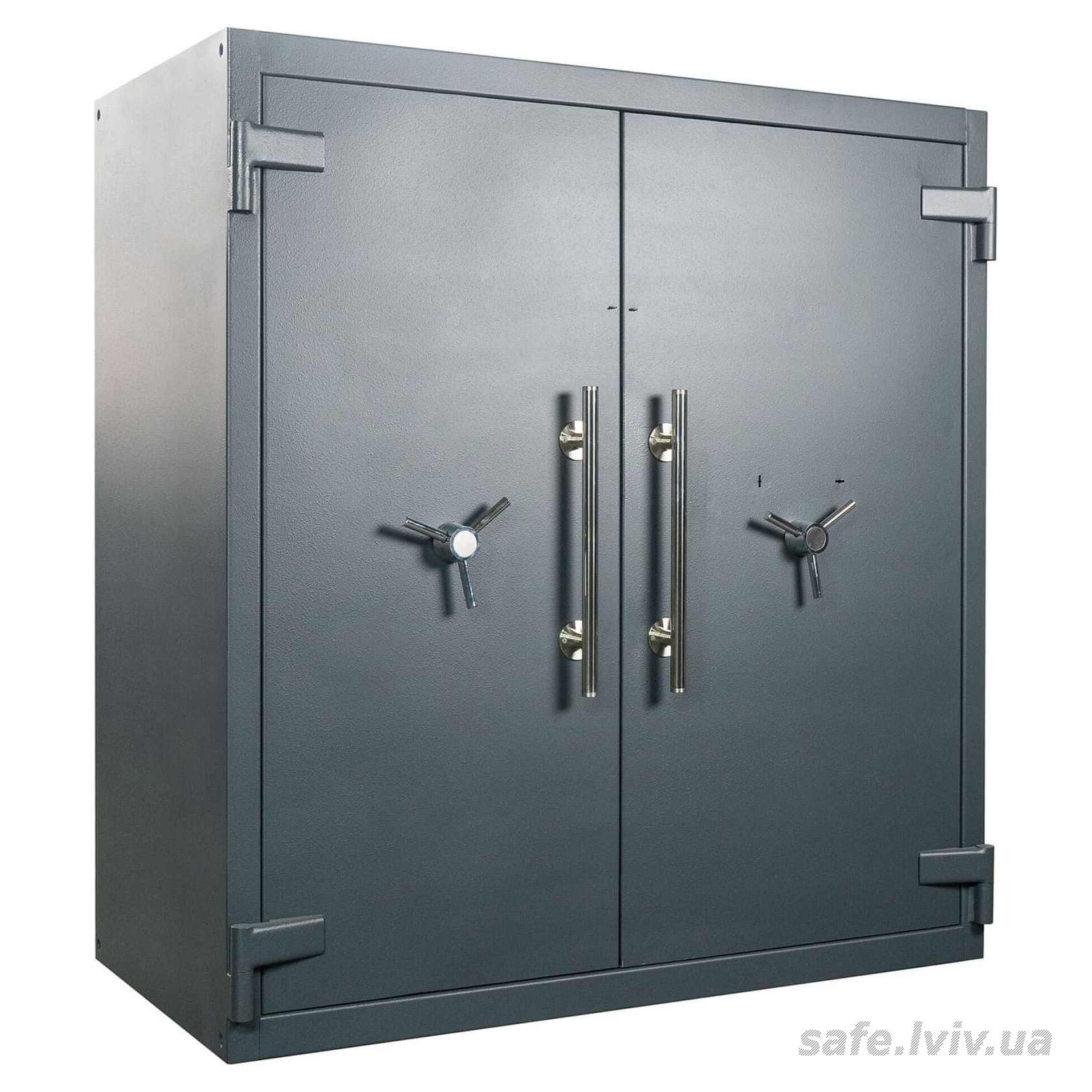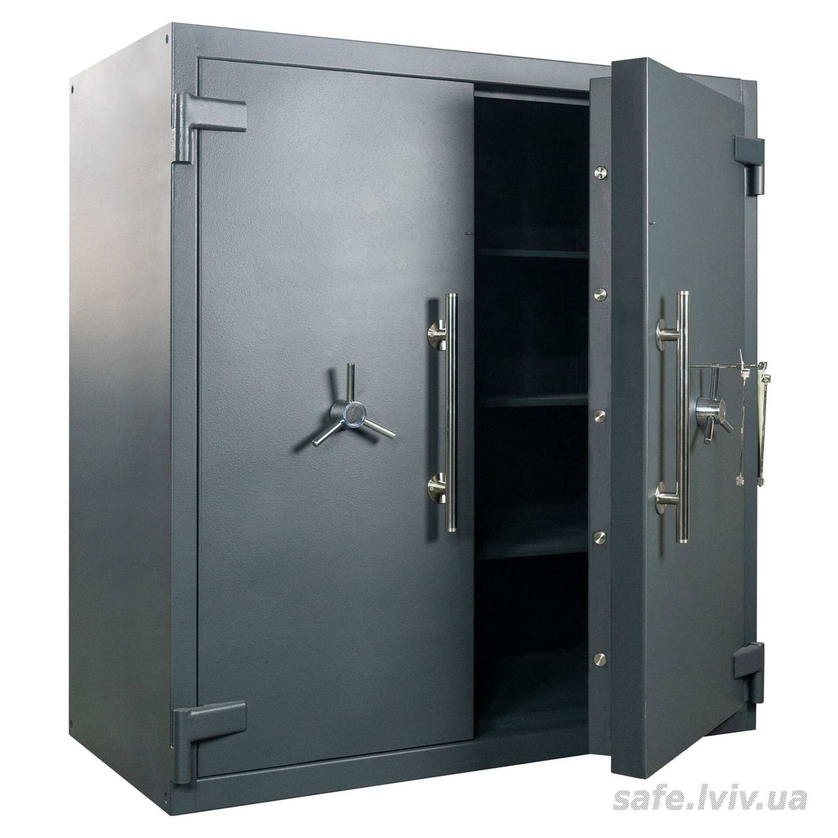 - Конструкція: корпус 100 мм (сталь - зламостійкий бетон - сталь), двері 175 мм (сталь - зламостійкий бетон - сталь); ригельна система тристороння.