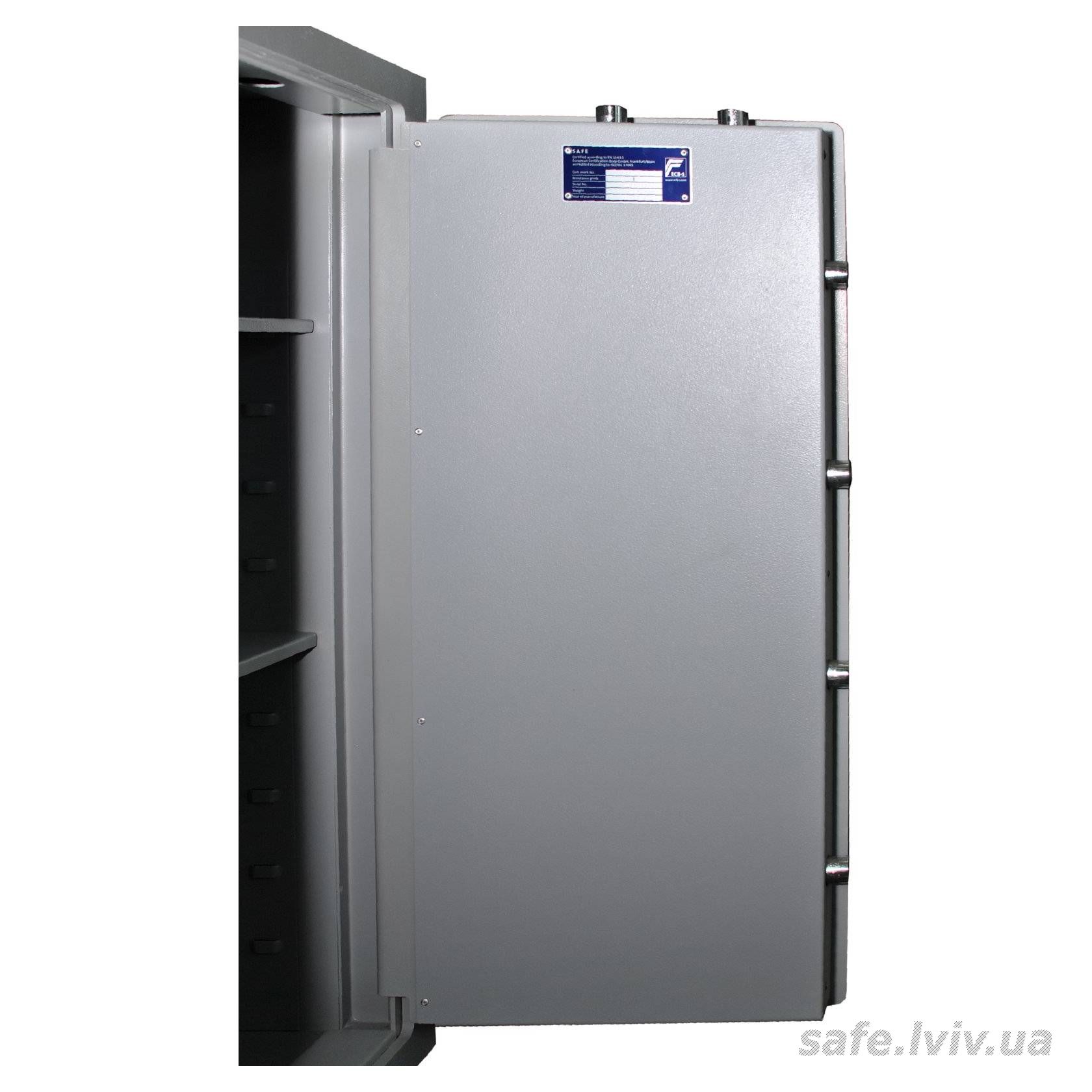 - Конструкція: корпус 25 мм (сталь - зламостійкий бетон - сталь) 25 мм, двері 10 мм (сталь) 10 мм; ригельна система тристороння, 8 ригелів Ø 25 мм.
