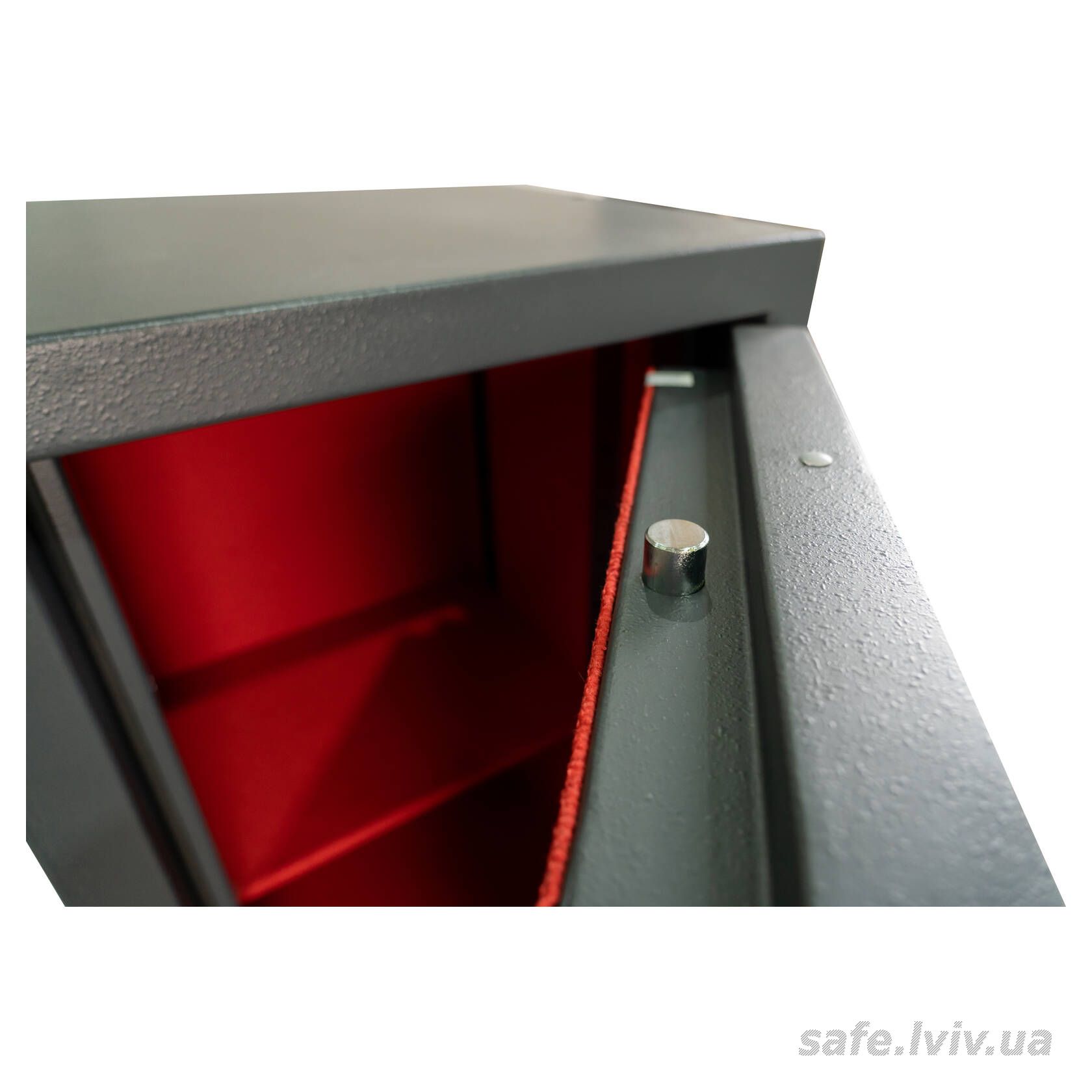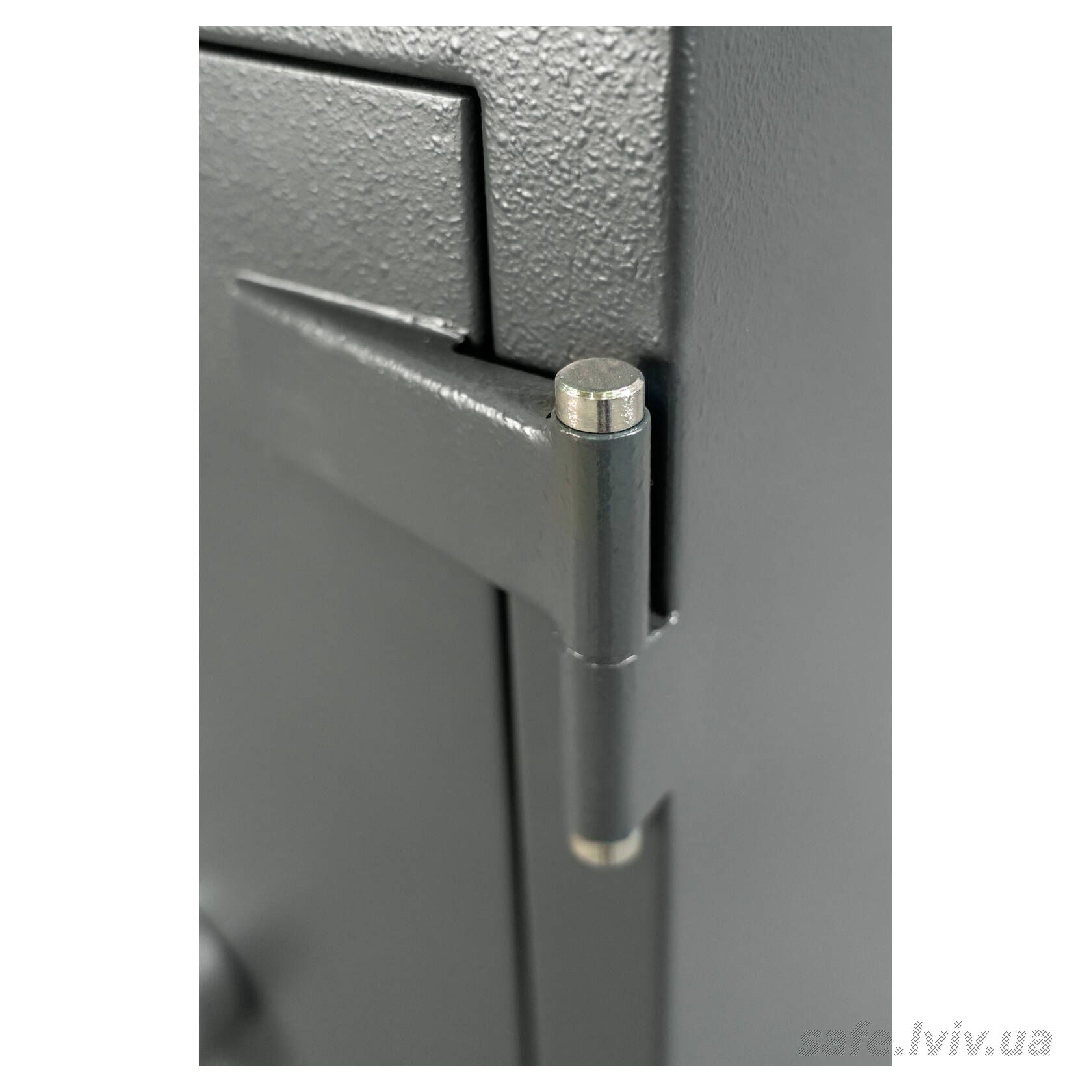 - Конструкція: корпус 55 мм (сталь - зламостійкий бетон - сталь), двері 10 мм (сталь); ригельна система тристороння, 5 ригелів Ø 25 мм.