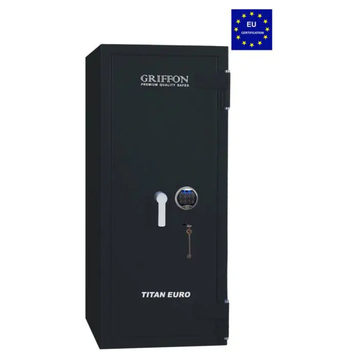 Griffon CLE.II.120.K.E це сертифікований сейф клас II за EN 1143-1 та вогнестійкість LFS 30P за EN 15659, випробуваний в Німеччині Європейським органом сертифікації ECB-S. Призначений для надійного зберігання грошей, коштовностей і документів у банках, офісах та приватних будинках. Конструкція корпусу 55 мм (сталь - зламостійкий бетон - сталь), дверей 10 мм (сталь) та ригельна система тристороння, 5 ригелів Ø 25 мм поєднують захист від злому і пожежі. Замок - ключовий STUV (Німеччина) VdS Class 1 (A), електронний M-LOCKS (Нідерланди) VdS Class 2 (B). Рекомендовані ліміти зберігання - до 4 000 мінімальних зарплат для особистого користування та до 2 000 для комерційного.