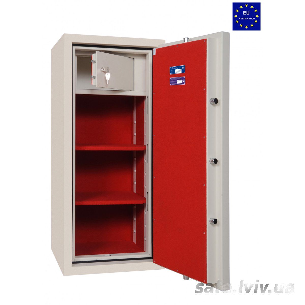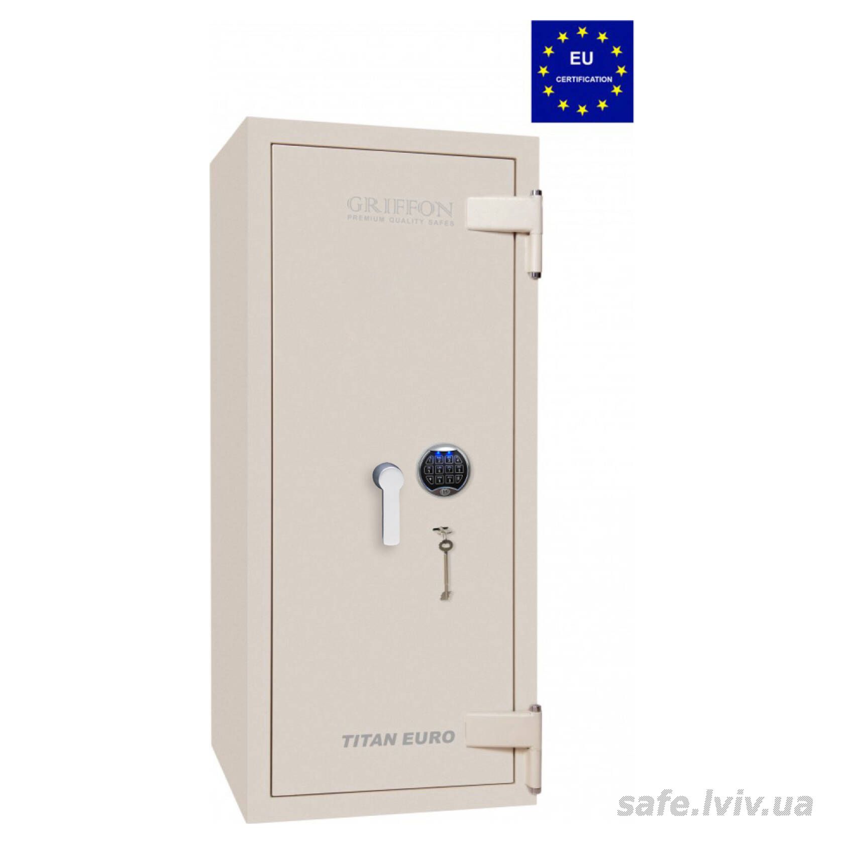 Griffon CLE.II.120.K.E Cream це сертифікований сейф клас II за EN 1143-1 та вогнестійкість LFS 30P за EN 15659, випробуваний в Німеччині Європейським органом сертифікації ECB-S. Призначений для надійного зберігання грошей, коштовностей і документів у банках, офісах та приватних будинках. Конструкція корпусу 55 мм (сталь - зламостійкий бетон - сталь), дверей 10 мм (сталь) та ригельна система тристороння, 5 ригелів Ø 25 мм поєднують захист від злому і пожежі. Замок - ключовий STUV (Німеччина) VdS Class 1 (A), електронний M-LOCKS (Нідерланди) VdS Class 2 (B). Рекомендовані ліміти зберігання - до 4 000 мінімальних зарплат для особистого користування та до 2 000 для комерційного.