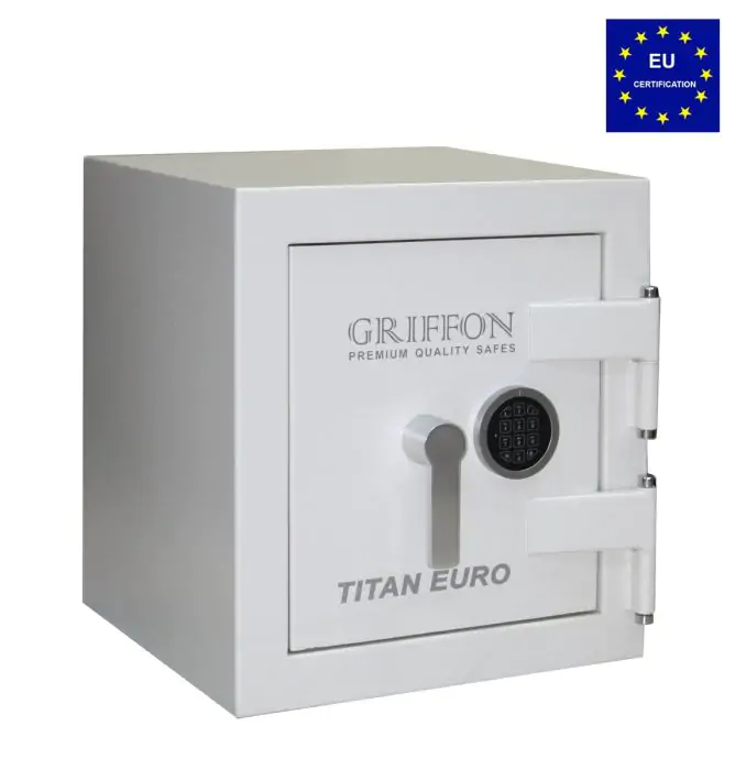 Griffon CLE.II.50.E Cream це сертифікований сейф клас II за EN 1143-1 та вогнестійкість LFS 30P за EN 15659, випробуваний в Німеччині Європейським органом сертифікації ECB-S. Призначений для надійного зберігання грошей, коштовностей і документів у банках, офісах та приватних будинках. Конструкція корпусу 55 мм (сталь - зламостійкий бетон - сталь), дверей 10 мм (сталь) та ригельна система тристороння, 5 ригелів Ø 25 мм поєднують захист від злому і пожежі. Замок - електронний M-LOCKS (Нідерланди) VdS Class 2 (B). Рекомендовані ліміти зберігання - до 4 000 мінімальних зарплат для особистого користування та до 2 000 для комерційного.