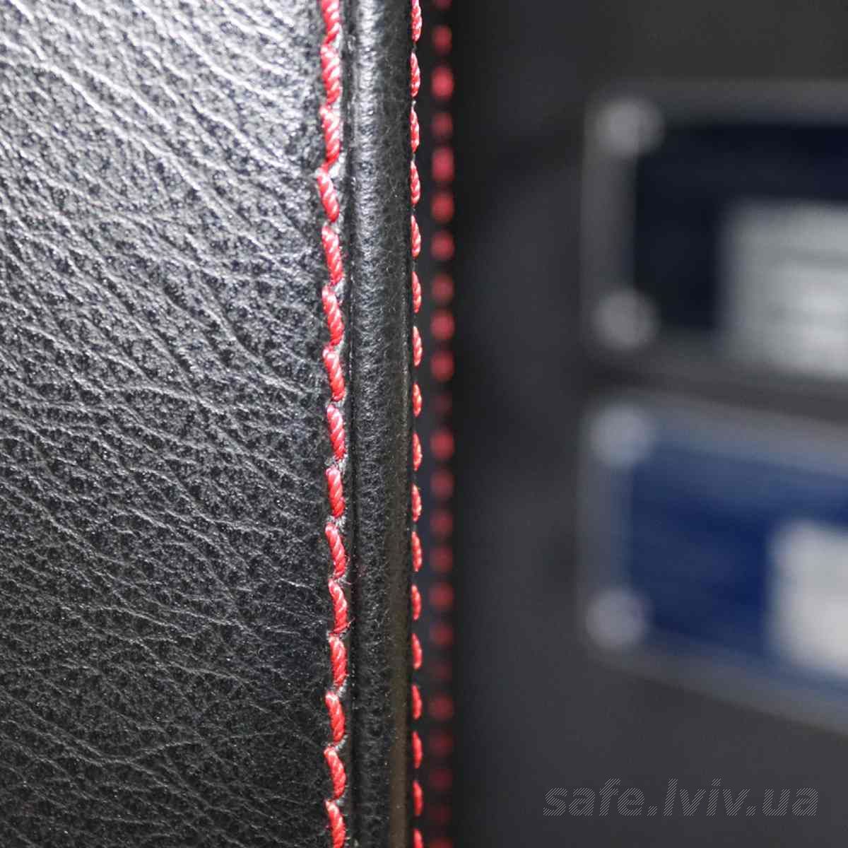 - Конструкція: корпус 55 мм (сталь - зламостійкий бетон - сталь), двері 10 мм (сталь); ригельна система тристороння, 7 ригелів Ø 25 мм.