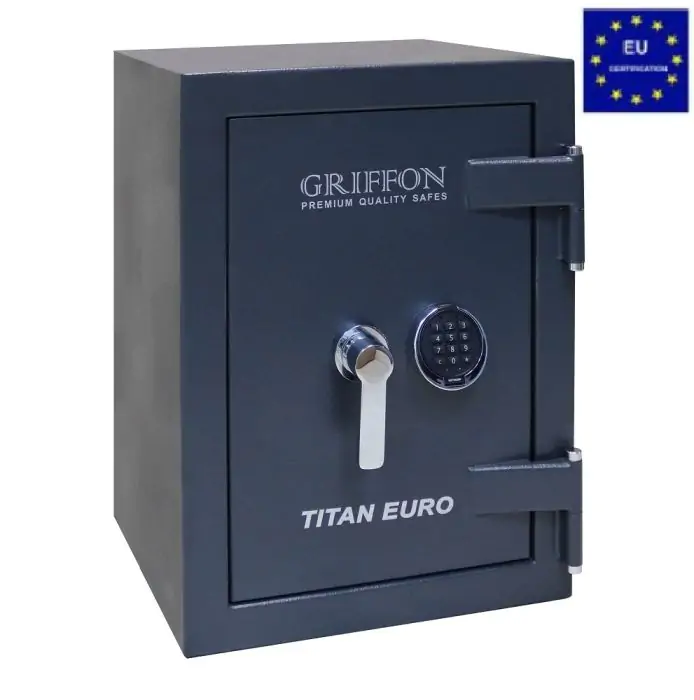 Griffon CLE.II.68.E Max Black це сертифікований сейф клас II за EN 1143-1 та вогнестійкість LFS 30P за EN 15659, випробуваний в Німеччині Європейським органом сертифікації ECB-S. Призначений для надійного зберігання грошей, коштовностей і документів у банках, офісах та приватних будинках. Конструкція корпусу 55 мм (сталь - зламостійкий бетон - сталь), дверей 10 мм (сталь) та ригельна система тристороння, 5 ригелів Ø 25 мм поєднують захист від злому і пожежі. Замок - електронний Tecnosicurezza 2. Рекомендовані ліміти зберігання - до 4 000 мінімальних зарплат для особистого користування та до 2 000 для комерційного.