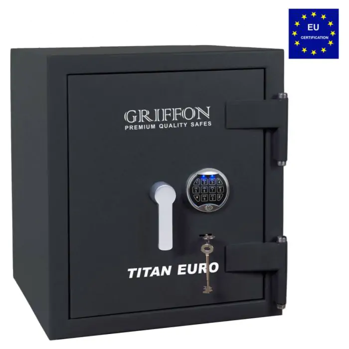 Griffon CLE.II.68.K.E це сертифікований сейф клас II за EN 1143-1 та вогнестійкість LFS 30P за EN 15659, випробуваний в Німеччині Європейським органом сертифікації ECB-S. Призначений для надійного зберігання грошей, коштовностей і документів у банках, офісах та приватних будинках. Конструкція корпусу 55 мм (сталь - зламостійкий бетон - сталь), дверей 10 мм (сталь) та ригельна система тристороння, 5 ригелів Ø 25 мм поєднують захист від злому і пожежі. Замок - ключовий STUV (Німеччина) VdS Class 1 (A), електронний M-LOCKS (Нідерланди) VdS Class 2 (B). Рекомендовані ліміти зберігання - до 4 000 мінімальних зарплат для особистого користування та до 2 000 для комерційного.
