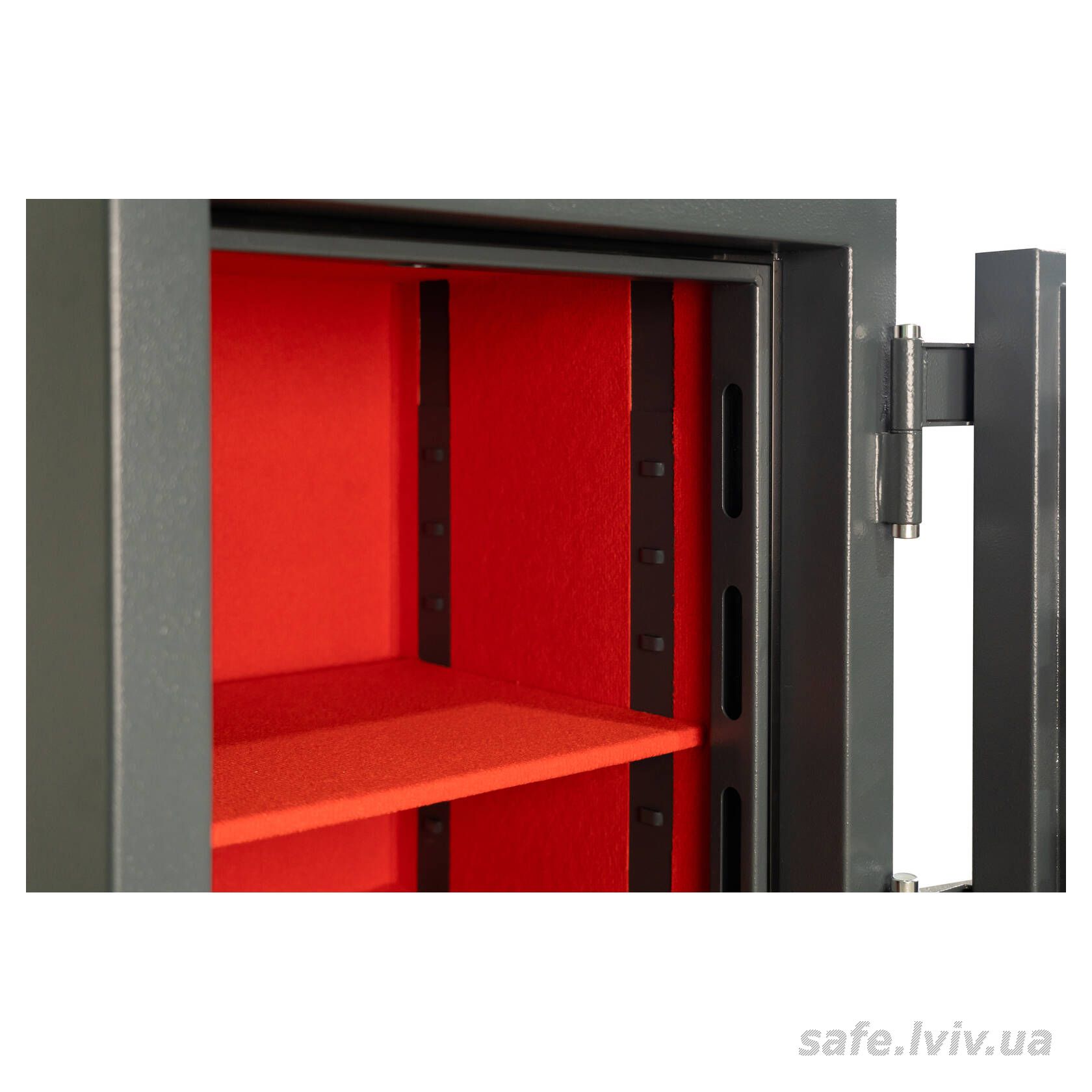 - Комплектація: внутрішнє оздоблення, 1 полиця; отвори для анкерування до підлоги.