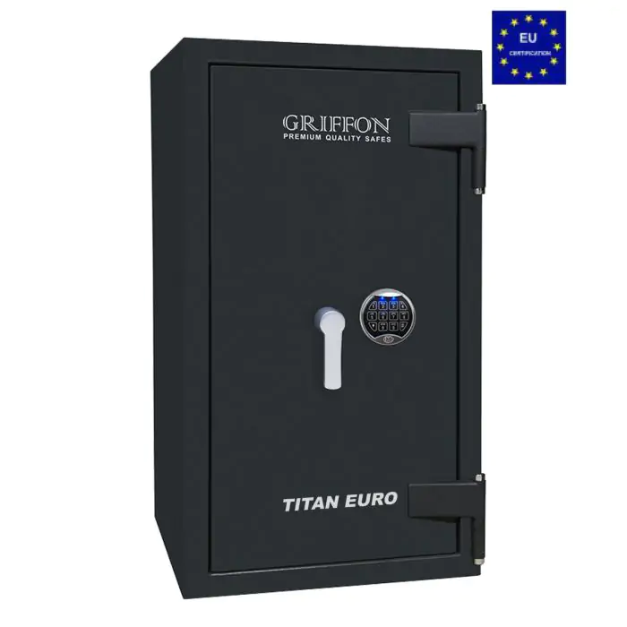 Griffon CLE.II.90.E це сертифікований сейф клас II за EN 1143-1 та вогнестійкість LFS 30P за EN 15659, випробуваний в Німеччині Європейським органом сертифікації ECB-S. Призначений для надійного зберігання грошей, коштовностей і документів у банках, офісах та приватних будинках. Конструкція корпусу 55 мм (сталь - зламостійкий бетон - сталь), дверей 10 мм (сталь) та ригельна система тристороння, 5 ригелів Ø 25 мм поєднують захист від злому і пожежі. Замок - електронний M-LOCKS (Нідерланди) VdS Class 2 (B). Рекомендовані ліміти зберігання - до 4 000 мінімальних зарплат для особистого користування та до 2 000 для комерційного.