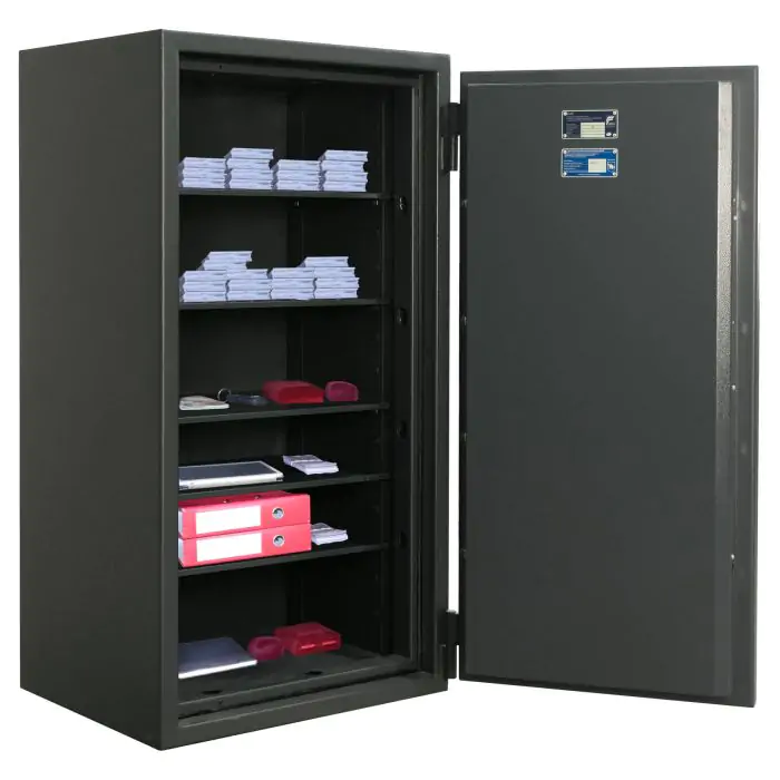 - Замок: ключовий STUV (Німеччина) VdS Class 1 (A), електронний STUV SWINGLOX (Німеччина) VdS Class 2; мінімум один сертифікований сейфовий замок класу B (VdS2).