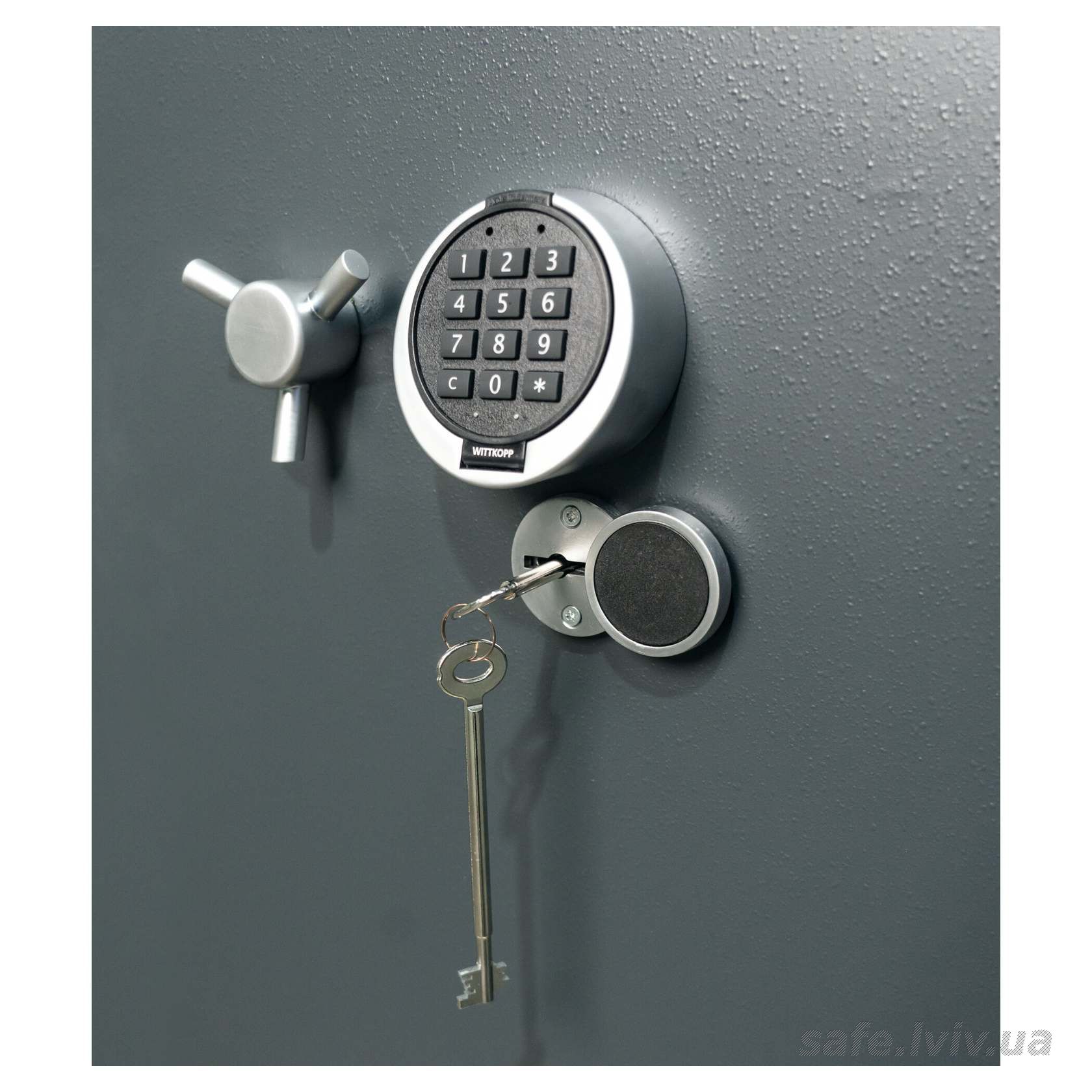 - Замок: ключовий STUV (Німеччина) VdS Class 1 (A), електронний Carl Wittkopp (Німеччина) VdS Class 2 (B); мінімум один сертифікований сейфовий замок класу B (VdS2).