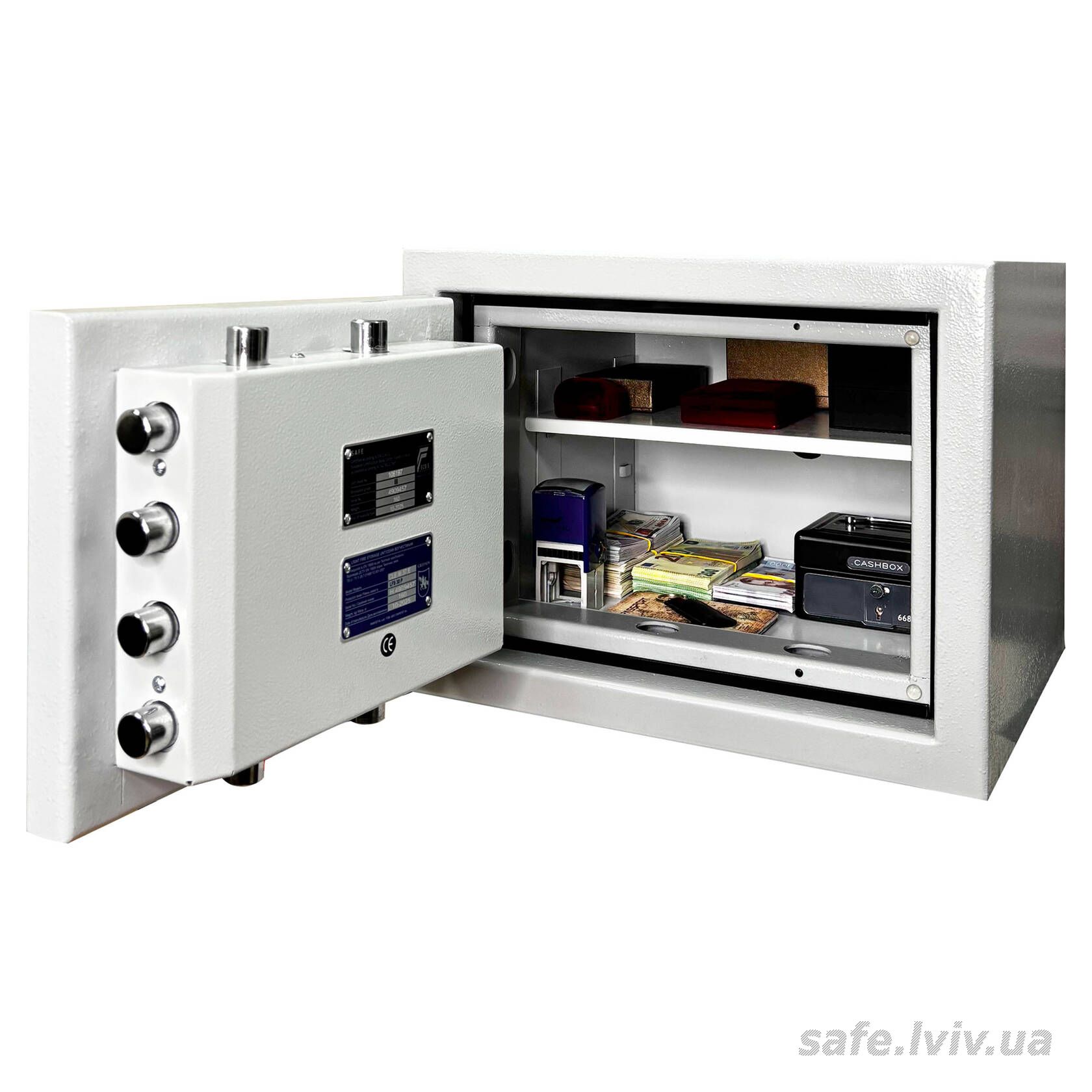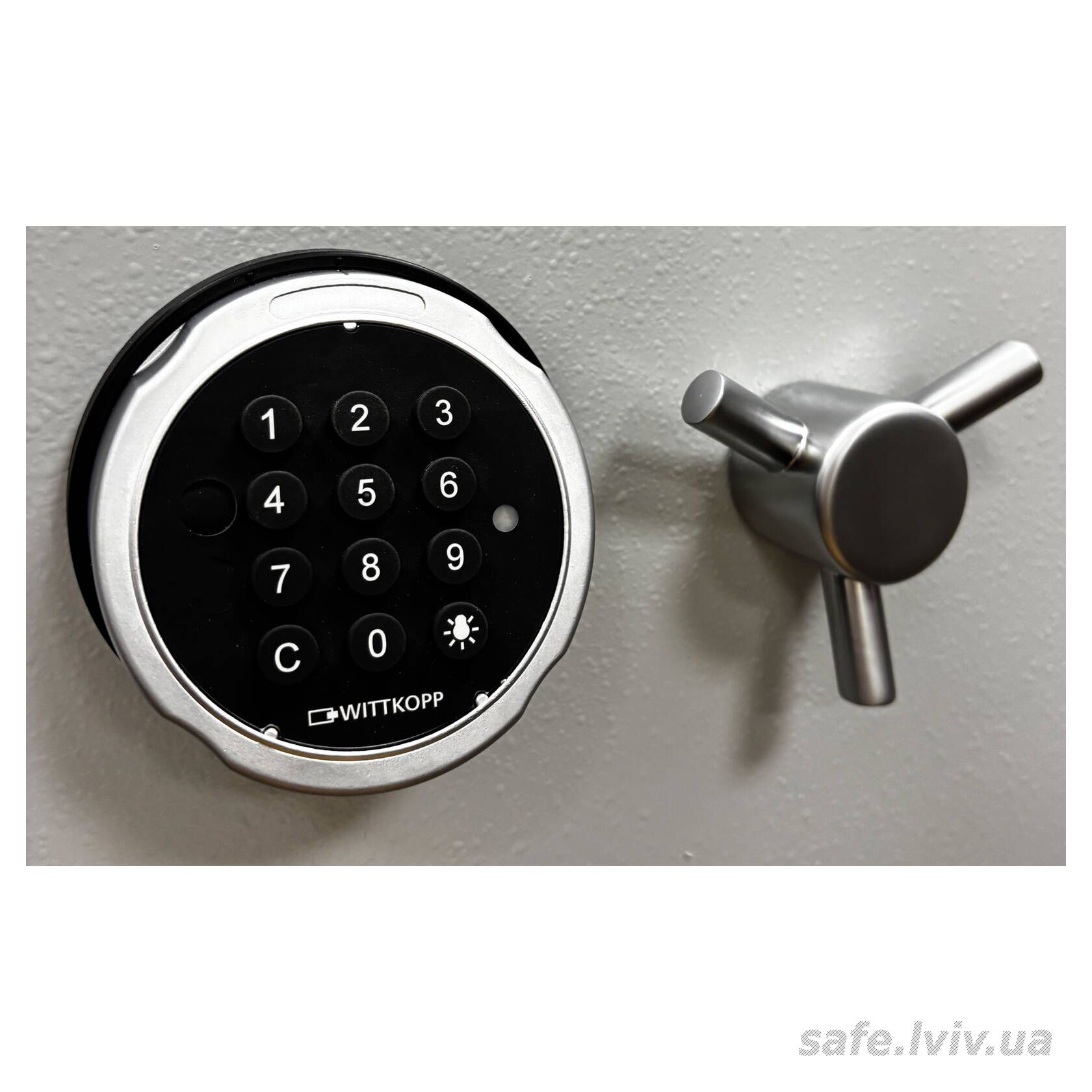 - Замок: електронний STUV SWINGLOX (Німеччина) VdS Class 2; мінімум один сертифікований сейфовий замок класу B (VdS2).