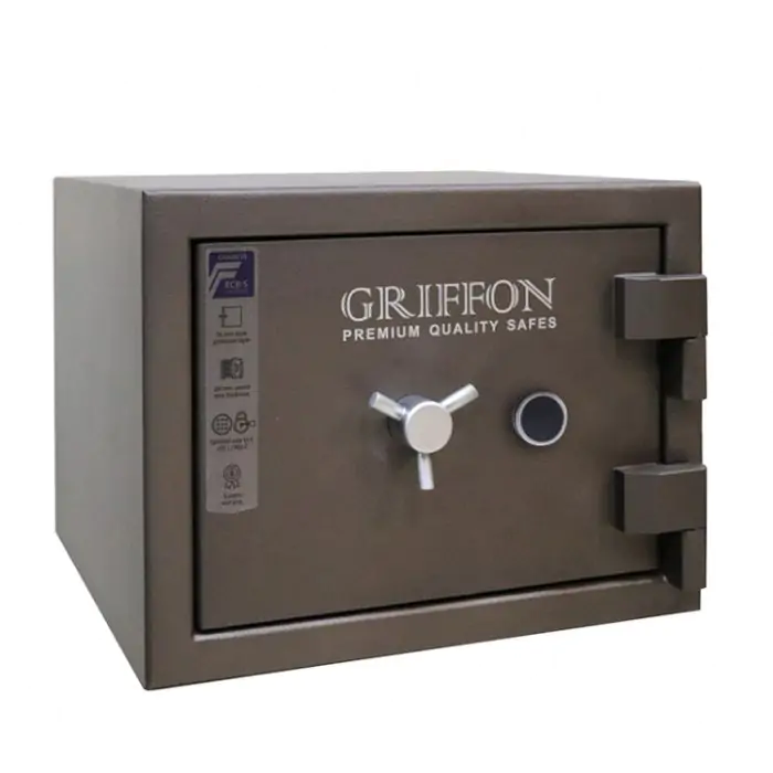 Griffon CLE.III.37.K це сертифікований сейф клас III за EN 1143-1 та вогнестійкість LFS 30P за EN 15659, випробуваний у Німеччині європейським органом сертифікації ECB-S. Призначений для надійного зберігання грошей, коштовностей і документів у банках, офісах та приватних будинках. Зламостійкість забезпечує конструкція корпусу 50 мм (сталь - зламостійкий бетон - сталь), дверей 110 мм (сталь - зламостійкий бетон - сталь), ригельна система тристороння, 8 ригелів Ø 25 мм, замок - ключовий STUV (Німеччина) VdS Class 1 (A). Товщина захисного шару 50 мм. Рекомендовані ліміти зберігання - до 8000 мінімальних зарплат для особистого користування та до 4000 для комерційного.