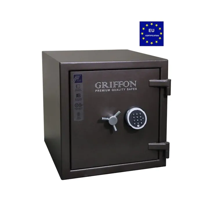 Griffon CLE.III.50.E це сертифікований сейф клас III за EN 1143-1 та вогнестійкість LFS 30P за EN 15659, випробуваний у Німеччині європейським органом сертифікації ECB-S. Призначений для надійного зберігання грошей, коштовностей і документів у банках, офісах та приватних будинках. Зламостійкість забезпечує конструкція корпусу 50 мм (сталь - зламостійкий бетон - сталь), дверей 110 мм (сталь - зламостійкий бетон - сталь), ригельна система тристороння, 8 ригелів Ø 25 мм, замок - електронний STUV SWINGLOX (Німеччина) VdS Class 2. Товщина захисного шару 50 мм. Рекомендовані ліміти зберігання - до 8000 мінімальних зарплат для особистого користування та до 4000 для комерційного.