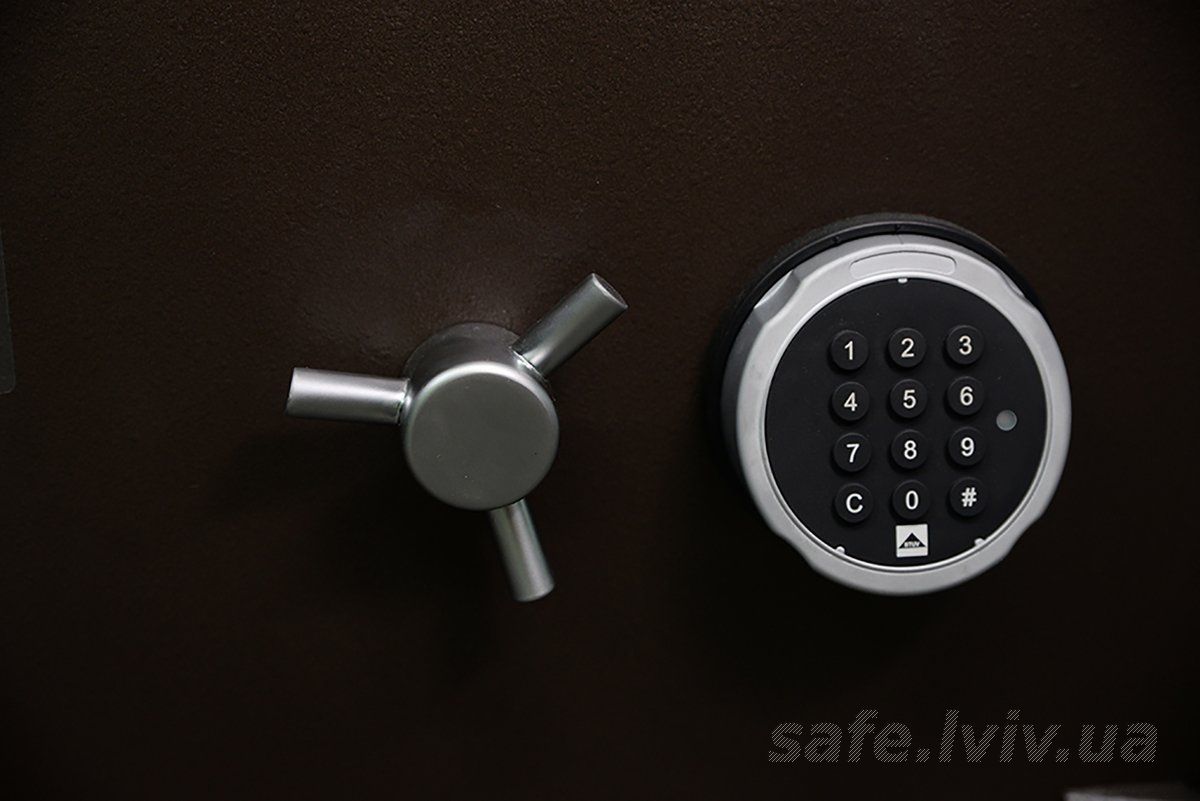 - Замок: електронний STUV SWINGLOX (Німеччина) VdS Class 2; мінімум один сертифікований сейфовий замок класу B (VdS2).
