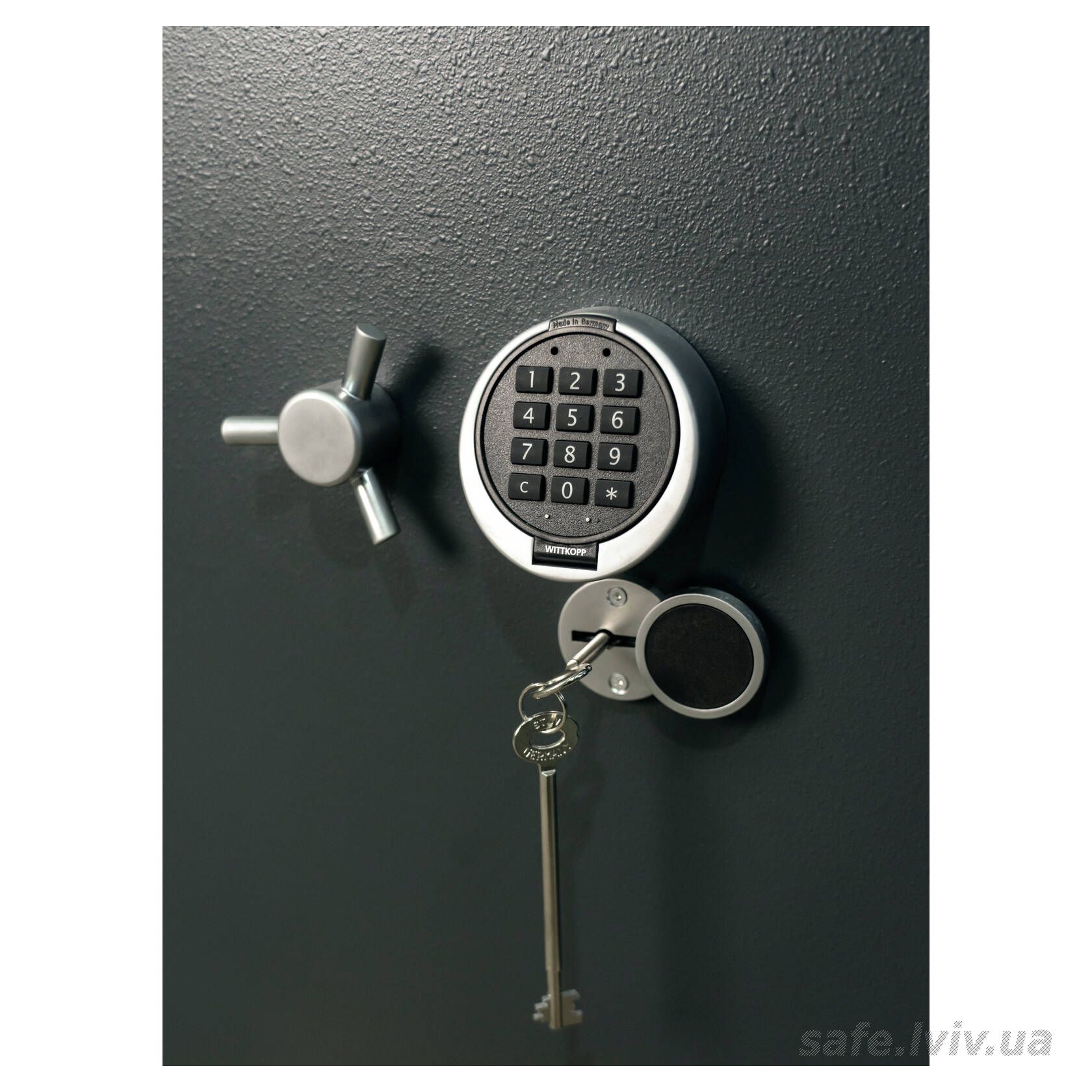 - Замок: ключовий STUV (Німеччина) VdS Class 1 (A), електронний Carl Wittkopp (Німеччина) VdS Class 2 (B); мінімум один сертифікований сейфовий замок класу B (VdS2).