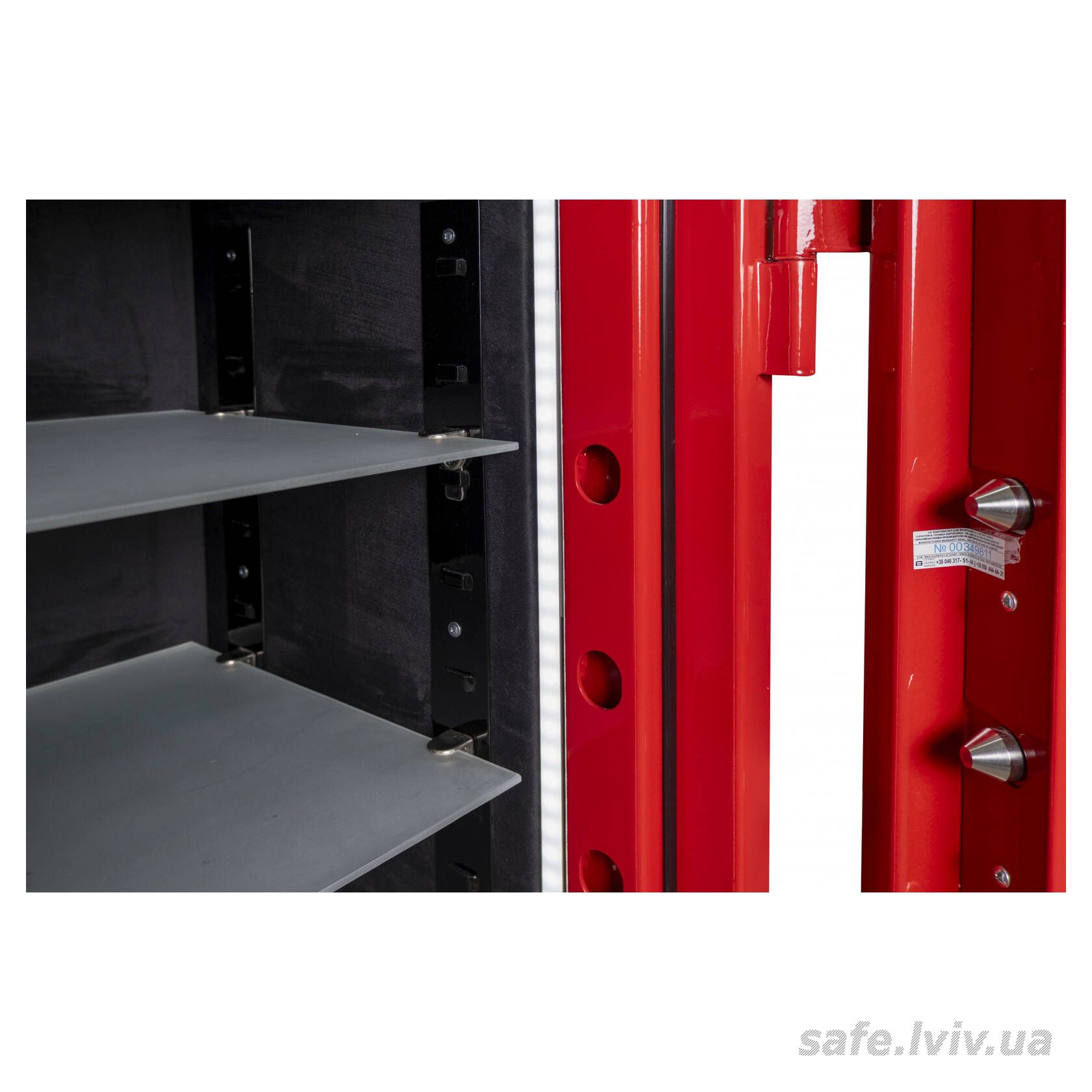 - Комплектація: внутрішнє оздоблення, 3 полиці, підсвітка; отвори для анкерування до підлоги.