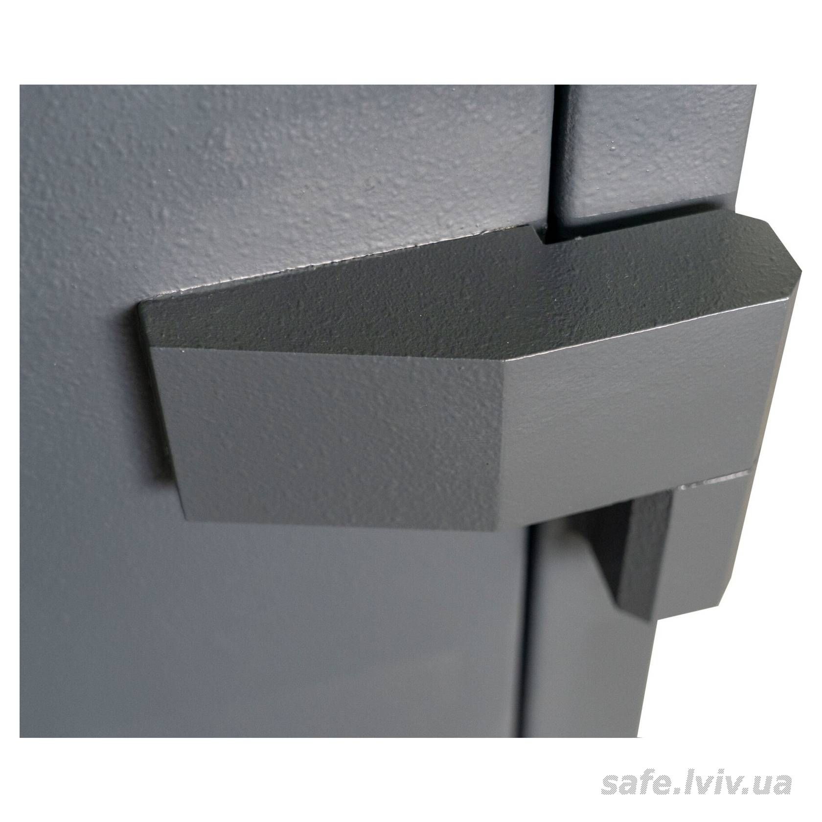 - Конструкція: корпус 80 мм (сталь - зламостійкий бетон - сталь), двері ; ригельна система тристороння, 12 ригелів Ø 40 мм.