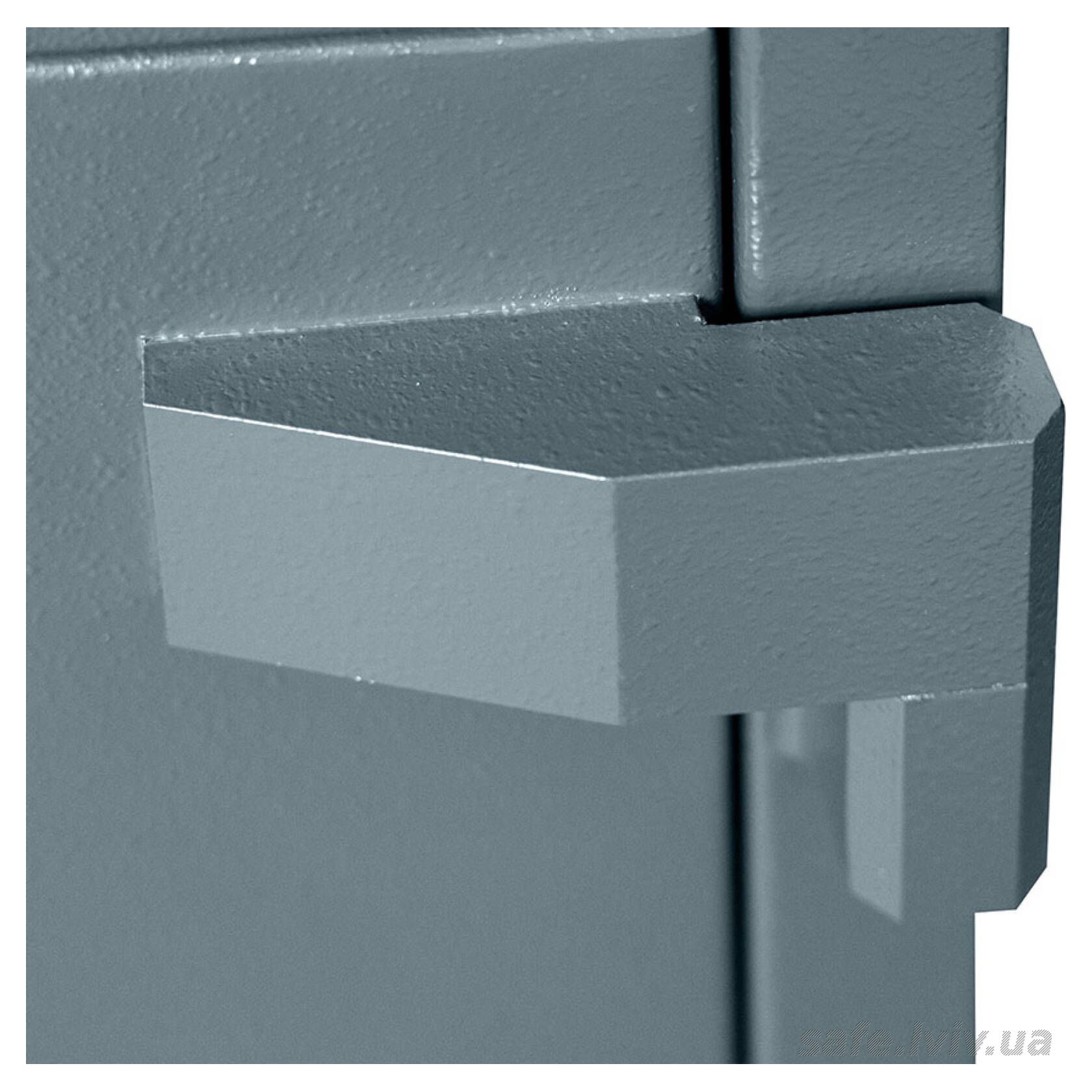 - Конструкція: корпус 80 мм (сталь - зламостійкий бетон - сталь), двері ; ригельна система тристороння, 12 ригелів Ø 40 мм.