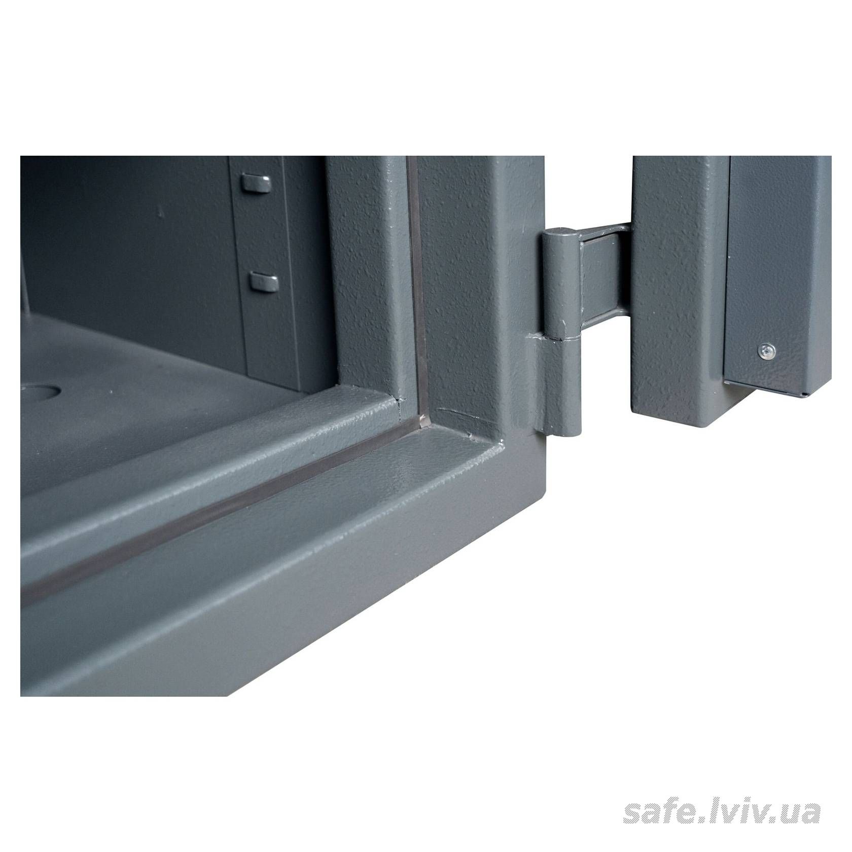 - Конструкція: корпус 55 мм (сталь - зламостійкий бетон - сталь), двері 10 мм (сталь); ригельна система тристороння, 7 ригелів Ø 25 мм.