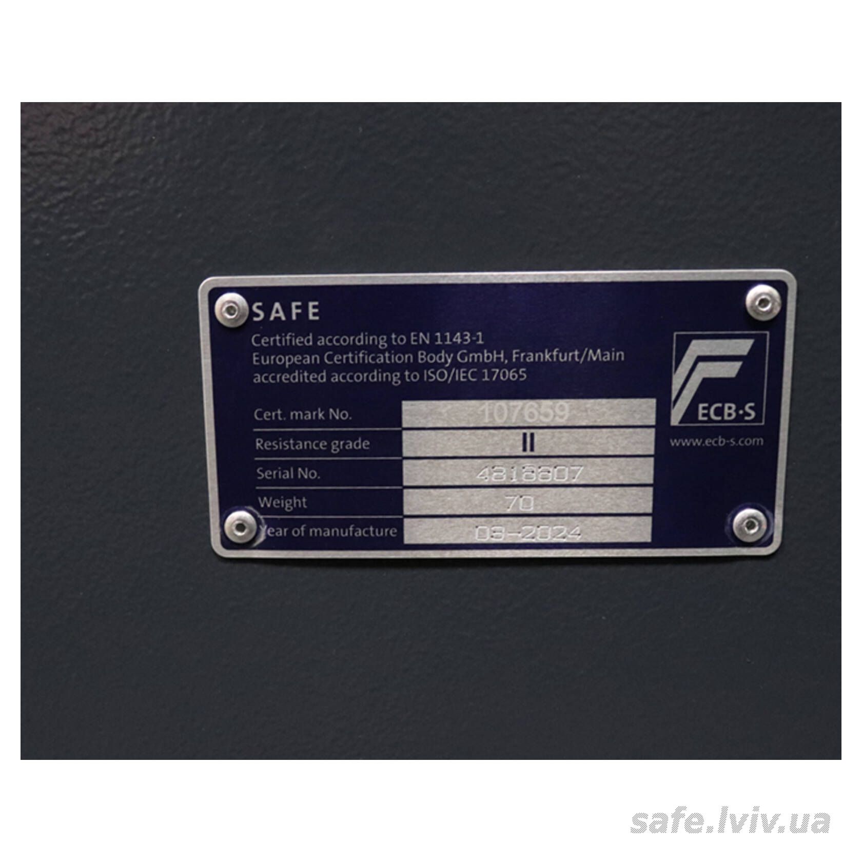 - Зламостійкість: клас II за EN 1143-1; стійкість 50/80 Resistance Units (одиниць опору).