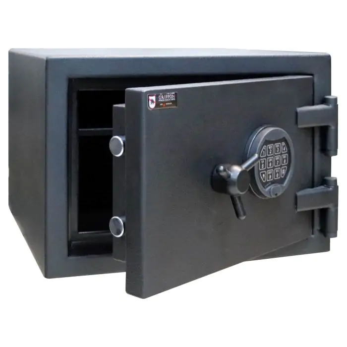 Griffon F.30.CL.I.30.E Black це сертифікований сейф клас I за EN 1143-1 та вогнестійкість LFS 30P за EN 15659, призначений для захисту від пожежі грошей, коштовностей і документів в офісах та приватних будинках. Зламостійкість забезпечує конструкція корпусу 55 мм (сталь - вогнестійкий бетон - сталь), дверей 95 мм (сталь - вогнестійкий бетон - сталь), ригельна система тристороння, 4 ригелі Ø 25 мм та замок - електронний SMARTLOCK (Італія) VdS Class 1 (A). Рекомендовані ліміти зберігання - до 2 000 мінімальних зарплат для особистого користування та до 1 000 для комерційного.