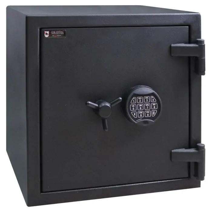 Griffon F.30.CL.I.50.E.SL Black це сертифікований сейф клас I за EN 1143-1 та вогнестійкість LFS 30P за EN 15659, призначений для захисту від пожежі грошей, коштовностей і документів в офісах та приватних будинках. Зламостійкість забезпечує конструкція корпусу 55 мм (сталь - вогнестійкий бетон - сталь), дверей 95 мм (сталь - вогнестійкий бетон - сталь), ригельна система тристороння, 5 ригелів Ø 25 мм та замок - електронний SMARTLOCK (Італія) VdS Class 1 (A). Рекомендовані ліміти зберігання - до 2 000 мінімальних зарплат для особистого користування та до 1 000 для комерційного.