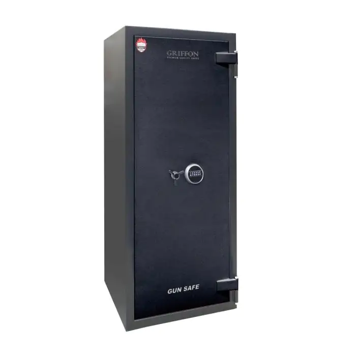Griffon F.60.CL.I.130.E.T Black це сертифікований сейф клас I за EN 1143-1 та вогнестійкість LFS 60P за EN 15659, призначений для захисту від пожежі грошей, документів і коштовностей у домі чи офісі. Захист забезпечують конструкція корпусу 72 мм (сталь - вогнестійкий бетон - сталь), дверей 140 мм (сталь - вогнестійкий бетон - сталь), ригельна система тристороння, 7 ригелів Ø 25 мм та замок електронний M-LOCKS (Нідерланди) VdS Class 2 (B).