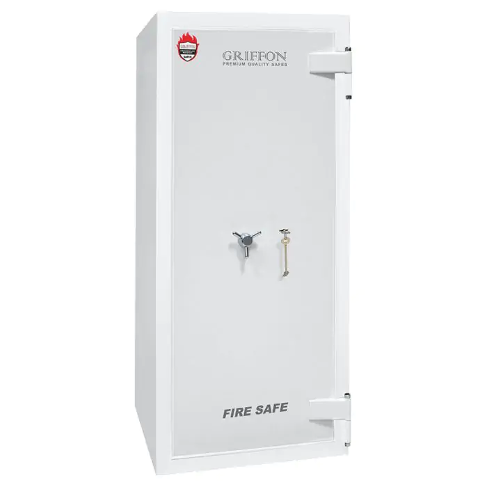 Griffon F.60.CL.I.130.E.T White це сертифікований сейф клас I за EN 1143-1 та вогнестійкість LFS 60P за EN 15659, призначений для захисту від пожежі грошей, документів і коштовностей у домі чи офісі. Захист забезпечують конструкція корпусу 72 мм (сталь - вогнестійкий бетон - сталь), дверей 140 мм (сталь - вогнестійкий бетон - сталь), ригельна система тристороння, 7 ригелів Ø 25 мм та замок електронний M-LOCKS (Нідерланди) VdS Class 2 (B).