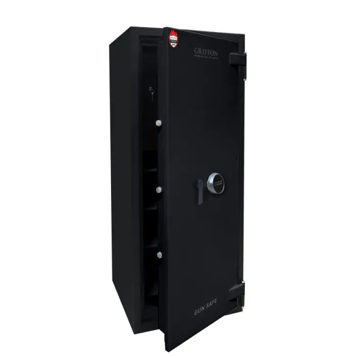 Griffon F.60.CL.I.150.E.T Black це сертифікований сейф клас I за EN 1143-1 та вогнестійкість LFS 60P за EN 15659, призначений для захисту від пожежі грошей, документів і коштовностей у домі чи офісі. Захист забезпечують конструкція корпусу 72 мм (сталь - вогнестійкий бетон - сталь), дверей 140 мм (сталь - вогнестійкий бетон - сталь), ригельна система тристороння, 7 ригелів Ø 25 мм та замок електронний M-LOCKS (Нідерланди) VdS Class 2 (B).