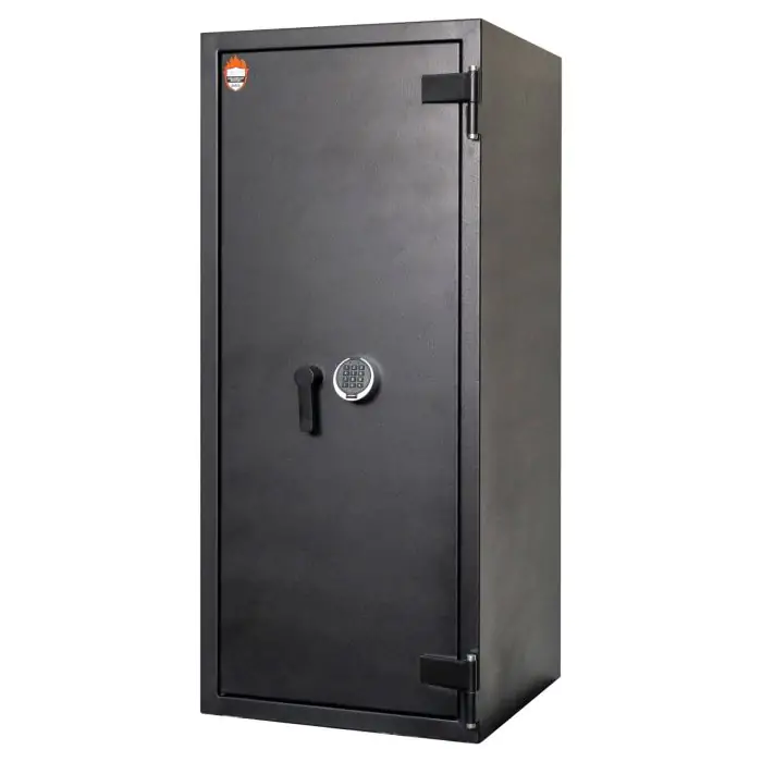 Griffon F.60.CL.I.150.E.T WKP Black це сертифікований сейф клас I за EN 1143-1 та вогнестійкість LFS 60P за EN 15659, призначений для захисту від пожежі грошей, документів і коштовностей у домі чи офісі. Захист забезпечують конструкція корпусу 72 мм (сталь - вогнестійкий бетон - сталь), дверей 140 мм (сталь - вогнестійкий бетон - сталь), ригельна система тристороння, 7 ригелів Ø 25 мм та замок електронний Carl Wittkopp (Німеччина) VdS Class 2 (B).