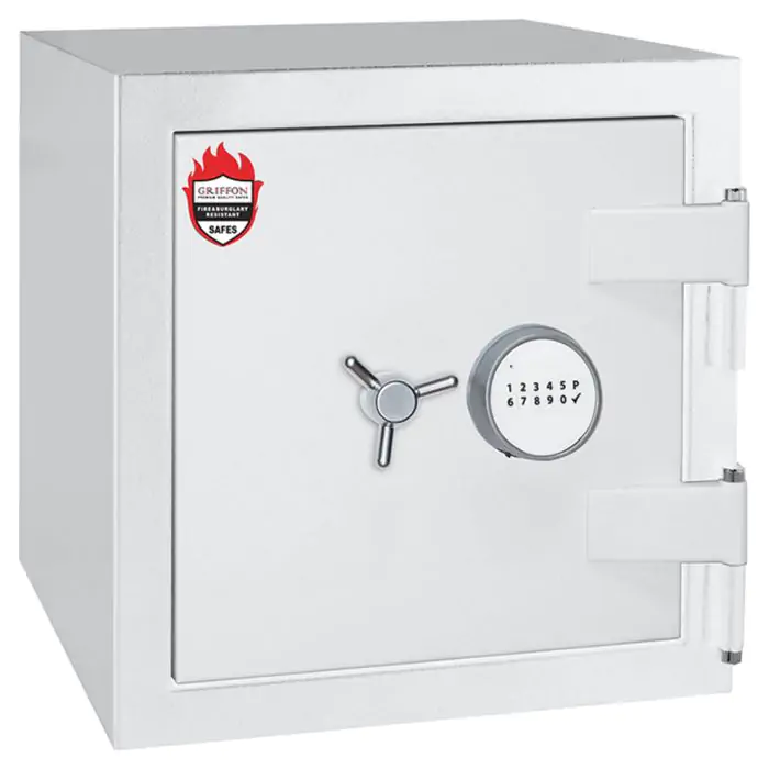 Griffon F.60.CL.I.51.E White це сертифікований сейф клас I за EN 1143-1 та вогнестійкість LFS 60P за EN 15659, призначений для захисту від пожежі грошей, документів і коштовностей у домі чи офісі. Захист забезпечують конструкція корпусу 72 мм (сталь - вогнестійкий бетон - сталь), дверей 140 мм (сталь - вогнестійкий бетон - сталь), ригельна система тристороння, 7 ригелів Ø 25 мм та замок електронний M-LOCKS (Нідерланди) VdS Class 2 (B).