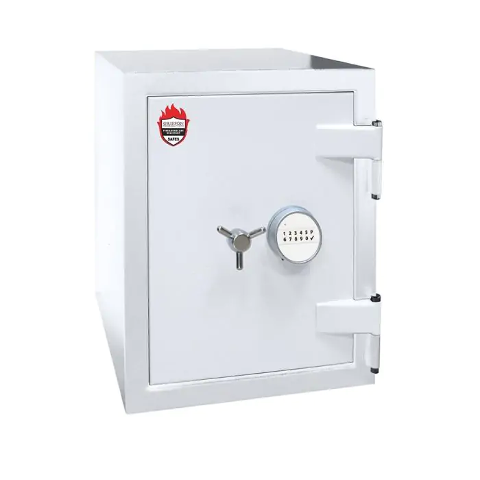 Griffon F.60.CL.I.63.E.T White це сертифікований сейф клас I за EN 1143-1 та вогнестійкість LFS 60P за EN 15659, призначений для захисту від пожежі грошей, документів і коштовностей у домі чи офісі. Захист забезпечують конструкція корпусу 72 мм (сталь - вогнестійкий бетон - сталь), дверей 140 мм (сталь - вогнестійкий бетон - сталь), ригельна система тристороння, 7 ригелів Ø 25 мм та замок електронний M-LOCKS (Нідерланди) VdS Class 2 (B).