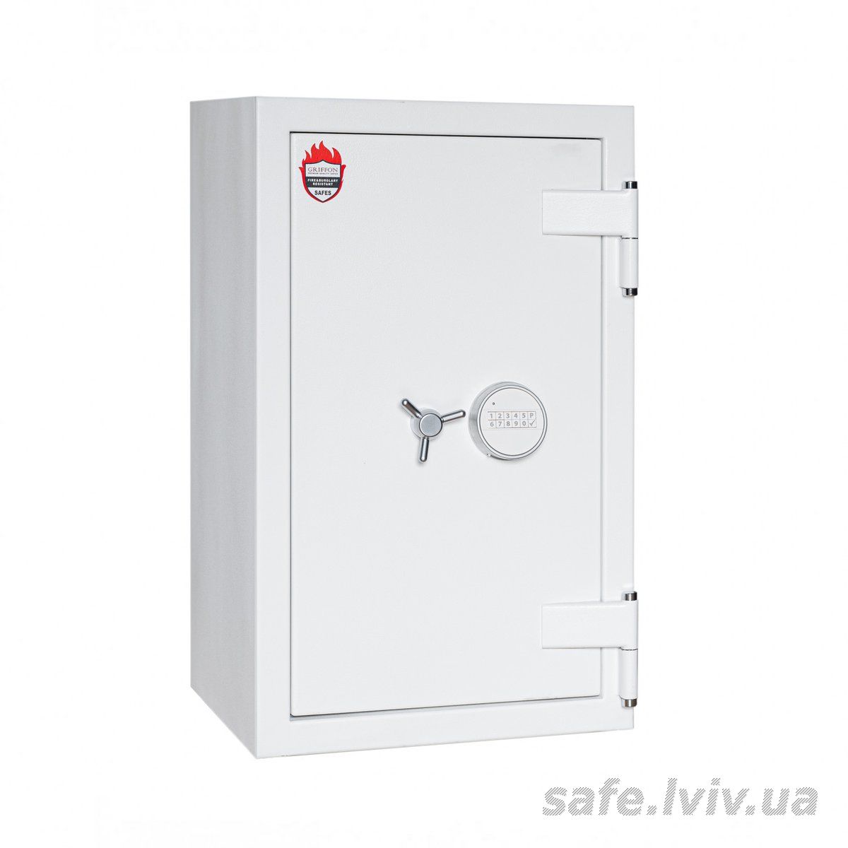 Griffon F.60.CL.I.84.E White це сертифікований сейф клас I за EN 1143-1 та вогнестійкість LFS 60P за EN 15659, призначений для захисту від пожежі грошей, документів і коштовностей у домі чи офісі. Захист забезпечують конструкція корпусу 72 мм (сталь - вогнестійкий бетон - сталь), дверей 140 мм (сталь - вогнестійкий бетон - сталь), ригельна система тристороння, 7 ригелів Ø 25 мм та замок електронний M-LOCKS (Нідерланди) VdS Class 2 (B).